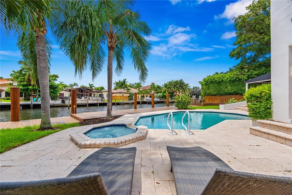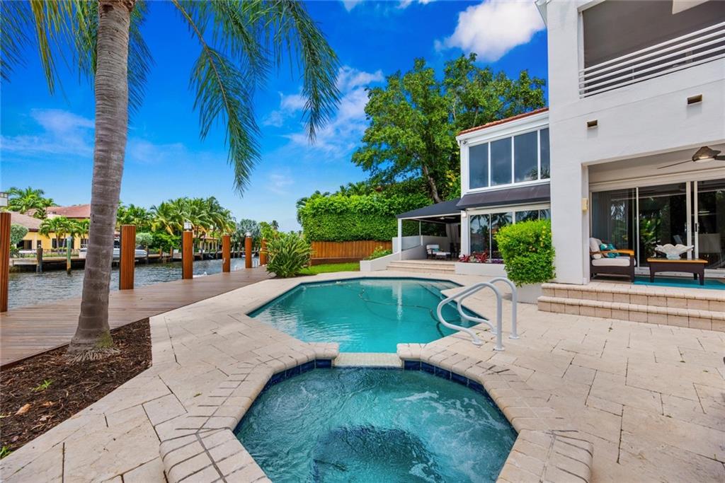 Contemporary Sophistication abounds in this Seven Isles stunner! This 5br/4.5 bath +/- 4,000 sf home with 80ft of Waterfront is perfectly sited on the highly sought-after street of Aqua Vista. Entertainers beware, you will have a hard time getting your guests to leave with a plethora of inviting spaces both inside and out! Tastefully updated kitchen with Stainless steel appliances, Island and butlers pantry. Multiple Wine Fridges, separate wet bar area and double sided fireplace. Huge Master Suite with Steam Shower and large Jacuzzi Tub. Welcoming covered porches offer special moments all leading to a large heated pool/spa. Whole House generator, hurricane protection, 24 hour security and a short stroll to the beach, shops and downtown.