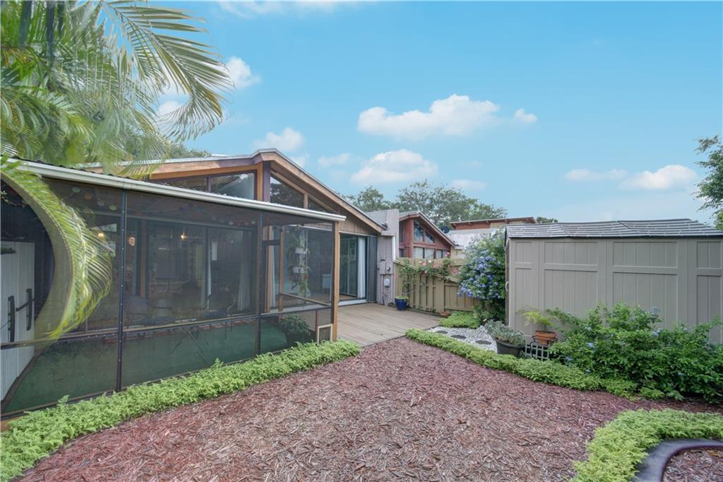 Wow! A mountain Chalet style single family home / townhouse in South Florida! HOA fee only $300/year. This beautiful property features vaulted ceilings with exposed beams, open kitchen with a bar & stainless steel appliances, bamboo flooring throughout, walk-in closets in both bedrooms, extra loft in the second bedroom and a large screened in patio. Fenced in backyard with a shed in the back and a small fenced in patio in the front. Great location, close to major highways I-95 & Turnpike, shoppes and restaurants but yet very secluded & quite area with lots of trees. Call now to schedule your private tour of the property! Will not last!