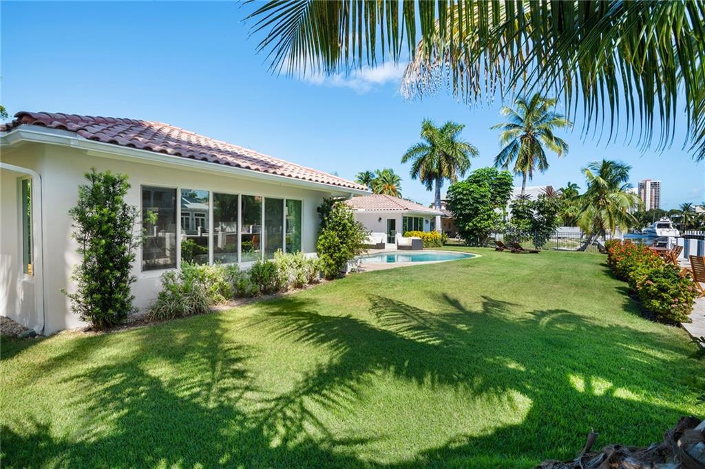 BOATERS DREAM HOME EXTRA LARGE LOT AND A HALF 13,500 SQ FT LOT Located in Exclusive security guard gated Seven Isles neighborhood of the Las Olas Isles. with 24 hour guard and roving attendant. This tastefully Updated 3bedroom 3 bath Ranch home sits on almost 115 ft of waterfront, with newer concrete raised dock with boat lift. Dockage for large yacht or multiple boats & watercraft.. This home has been updated with new Volume ceilings and chefs kitchen, marble floors and high impact windows and doors. XXXLarge master bedroom suite.