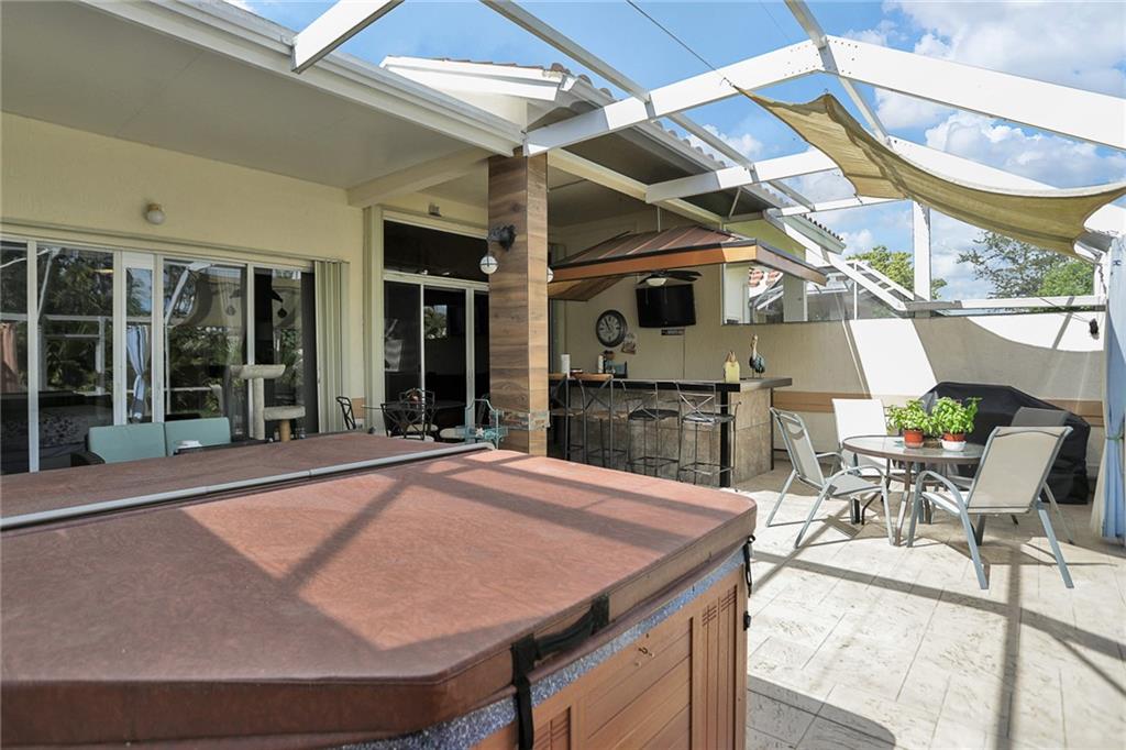 You will want to come live here and never leave! This beautiful 2 story town home features a large master suite on the first floor with renovated master bath, dramatic foyer entrance, fantastic kitchen, spacious living and dining areas, all tile floors a laundry, half bath, tons of storage -- ALL ON THE FIRST FLOOR! Outside enjoy the large screened patio with custom tiki bar, covered seating areas and a hot tub to unwind in. Upstairs you will find impact windows, a second master suite, third bedroom, third full bath and a roomy loft for an office, den or play room. All this in Fairview Pointe, a gated community with heated pool, inside of Palm Aire Country Club - golf, tennis, pickeball, walking paths... located minutes from the turnpike and I-95 and 20 minutes to the beach.