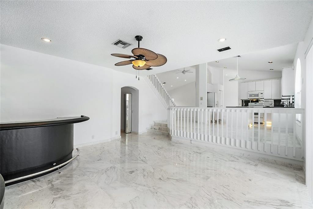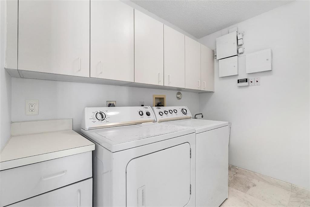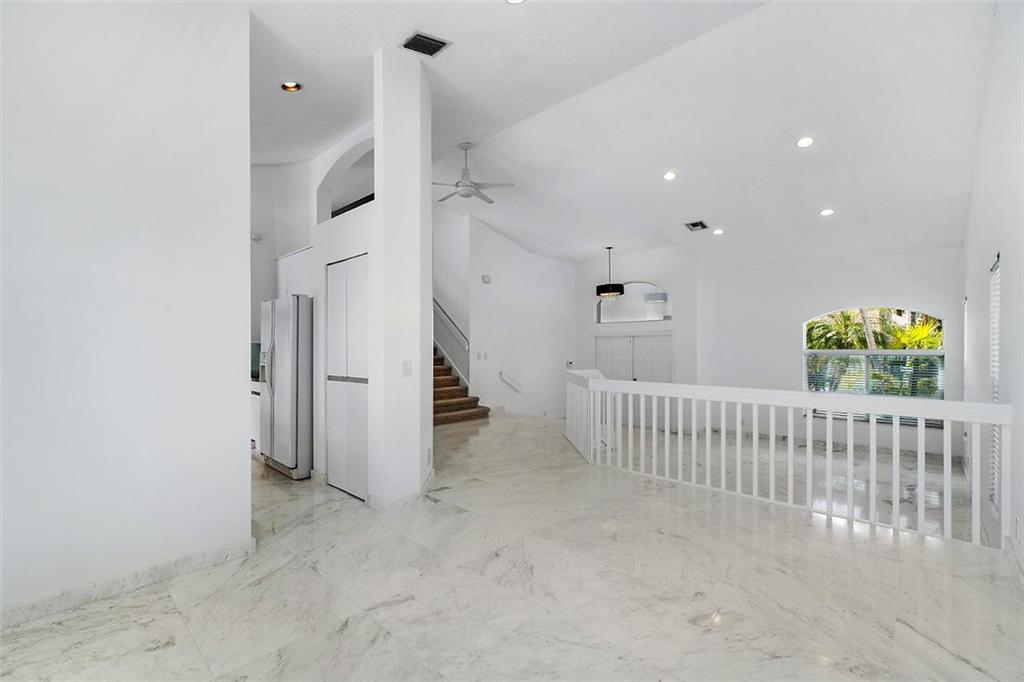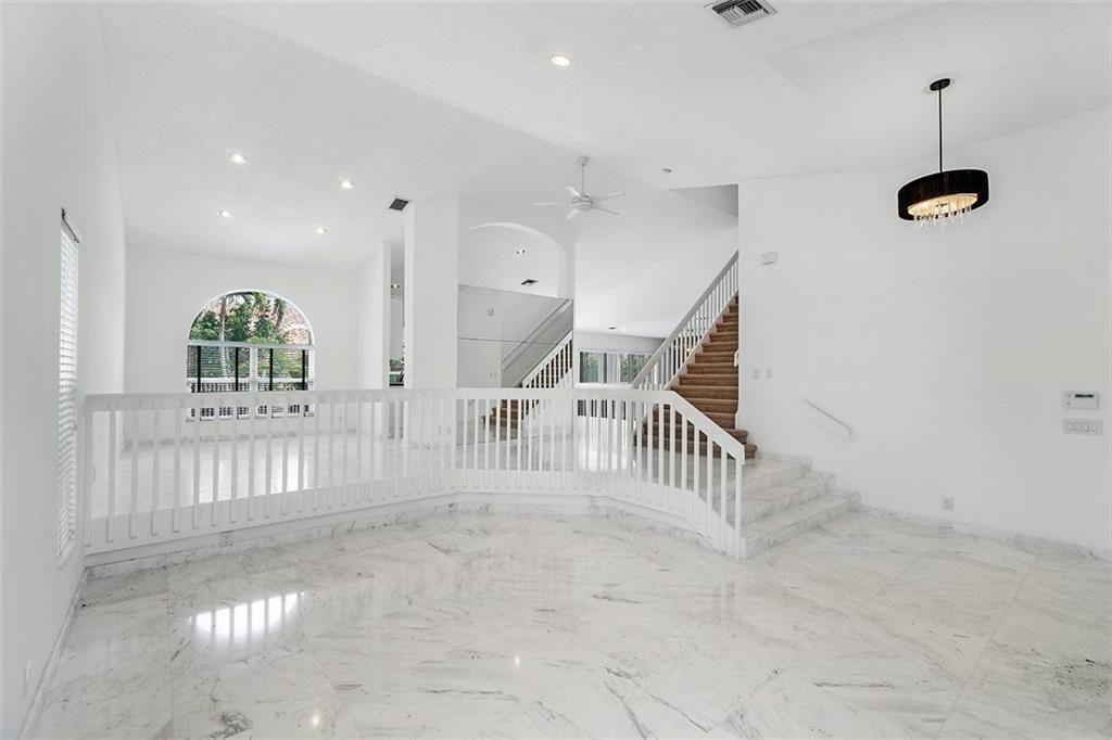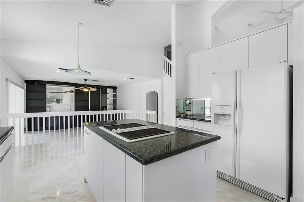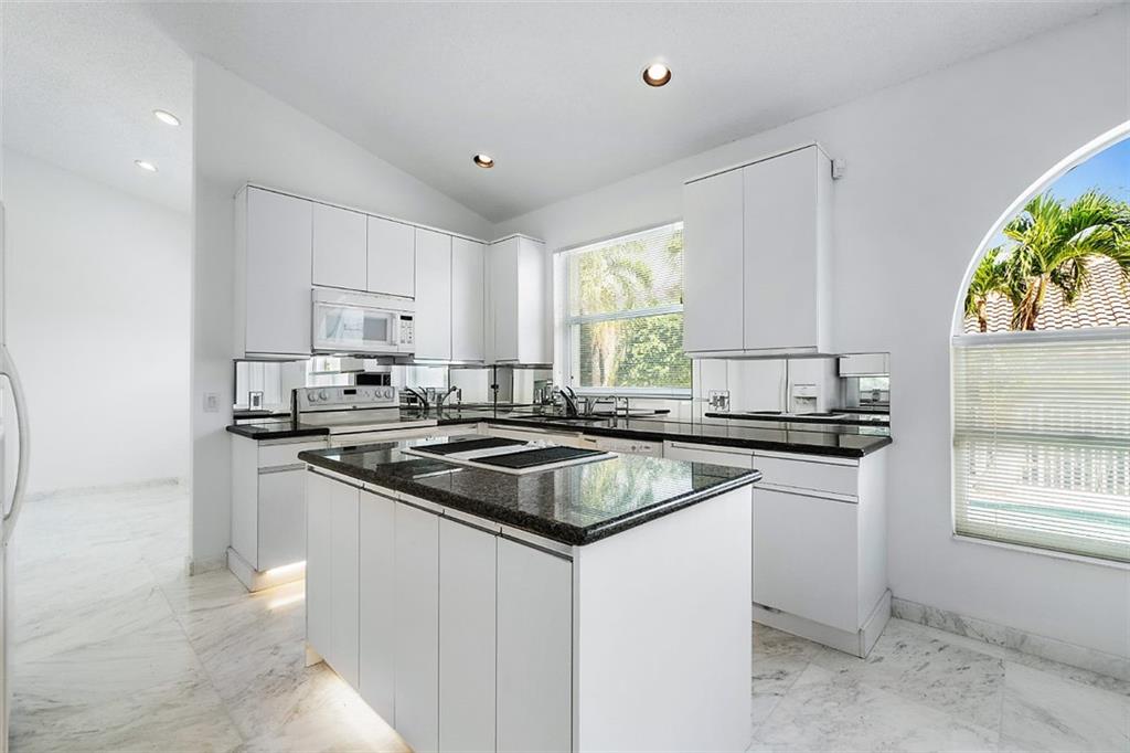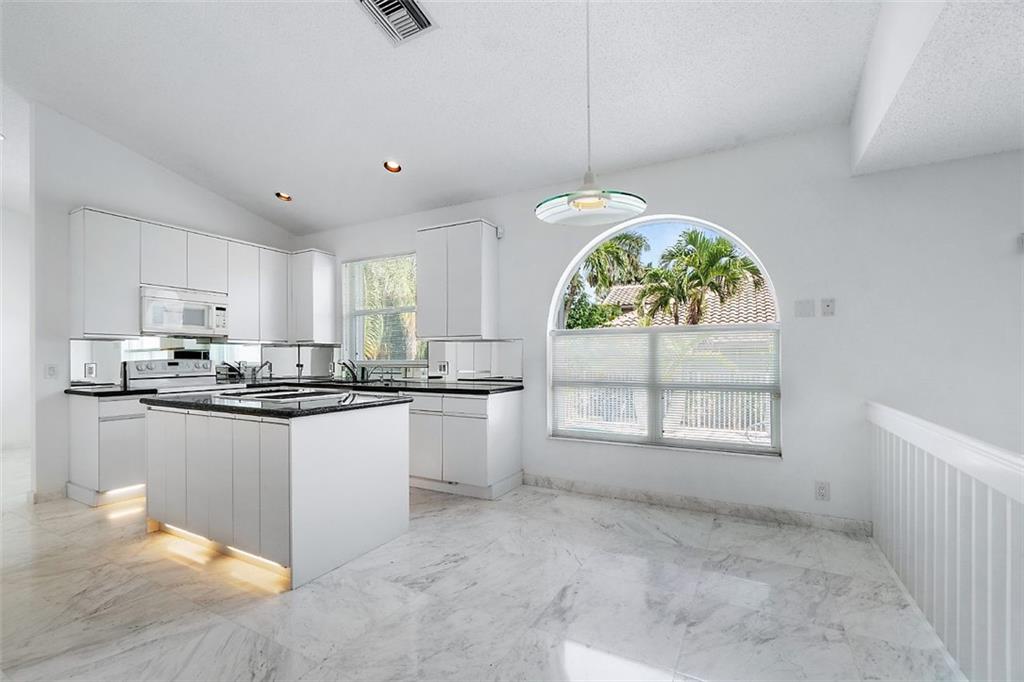 Beautiful 2 level contemporary home with lakefront views. Double door entry to foyer, with Carrara marble floors. Formal dining room. Kitchen Island, Jenn-Aire grill, Granite, New Stainless Steel Appliances. New Washer and Dryer. Great dinette for everyday meals overlooking the family room. Custom contemporary wall unit w/ wet bar. One bedroom on the first floor. Master bedroom w/en-suite bathroom. Large walk-in closet. Master bedroom's balcony for enjoying the lake view. Two nice size bedrooms on the second level as well as a full bathroom w/laundry chute. Accordion Hurricane Shutters. Top-rated schools. Reasonable HOA : Manned Gated, pool, and spa, full exercise room, Basketball, tennis courts, tot playground High-speed internet & Basic cable. AS-IS CONTRACTS ONLY. See supplement.