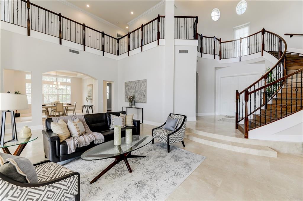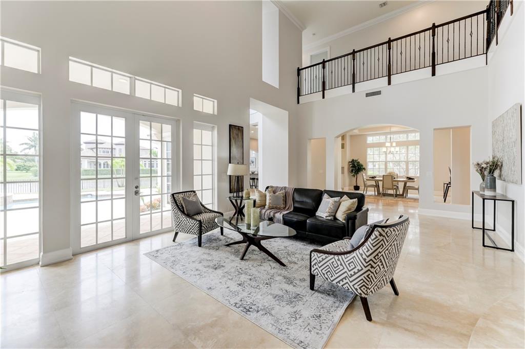 Spectacular lakefront 7/5.5 estate located on over 1/2 acre lot in the prestigious Heron Estates in Heron Bay. Luxury & sophistication at every turn starting w/the grand foyer leading into a spacious living area w/decorative accent wall, spiral staircase w/wrought iron railing, 1st floor Master suite w/separate sitting area, "to die for" walk-in closet & adjacent office, marble floors thru-out living areas, wood floors in bedrooms, gorgeously updated bathrooms, split bedroom floor plan, Jack & Jill Terrace (Balcony), walk-in closets in each room, gourmet eat-in kitchen w/Quartz counters & SS appliances (gas range), butler's pantry, recessed lighting, XL laundry room w/new W/D, 3 car garage, Central vacuum, open pool/patio, impact windows and completely fenced yard with golf & lake views.