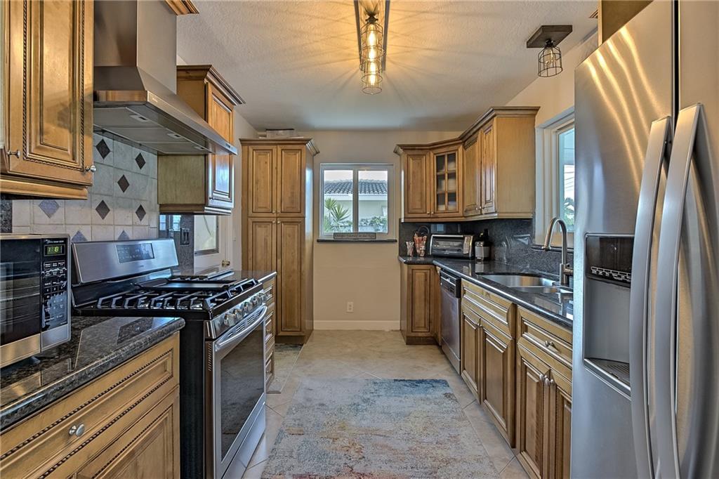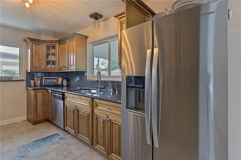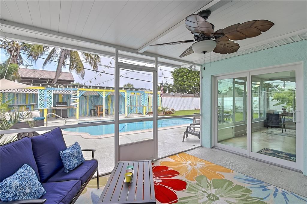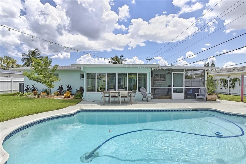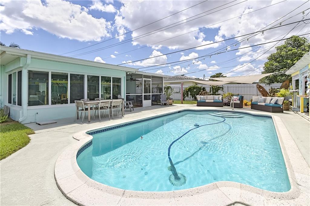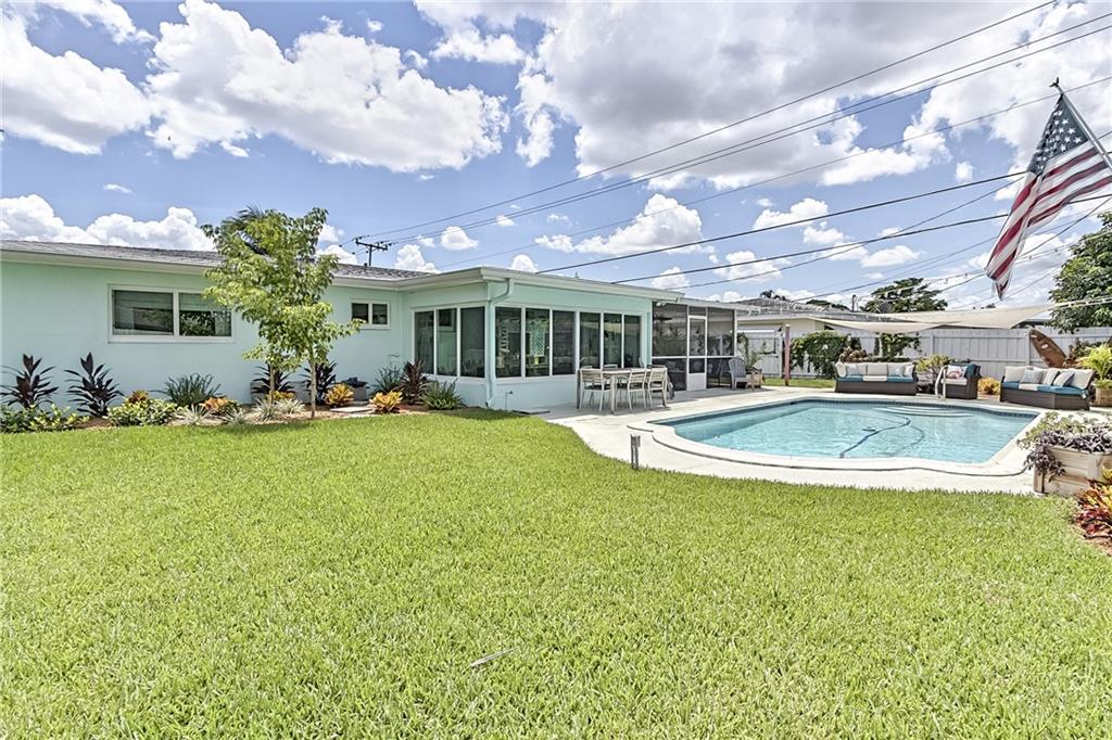Beautifully renovated home on a quiet & well maintained street. Enjoy the bright natural light from the open living area & direct pool views from the living areas, kitchen & master bedroom. Home features 2 large bedrooms, 2 bathrooms & an office. Tile flooring throughout the living areas, new luxury carpet in the bedrooms. The kitchen has been nicely updated with granite counters, tile backsplash & stainless appliances. Entertain on the screened patio, large pool deck, tiki area & still have a large grassy yard for kids or pets. New roof 2017, new a/c, Hurricane Impact windows & doors, new sod, kitchen appliances less than 1 year old, & so many more upgrades!!