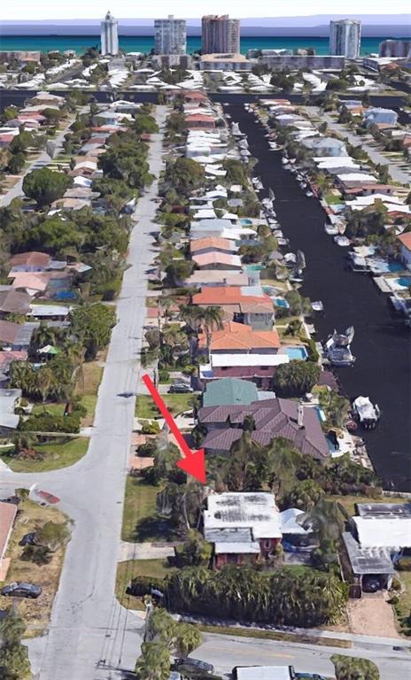 Great opportunity to own a single family home EAST of Federal and just a short walk to the end of 13th Ct to the neighborhood direct Intracoastal park. Lowest priced single family home in all of Pompano Isles and convenient to everything! This cozy 2 bedroom, 1 bath mid-century modern home sits on a large corner lot 128'x76' surrounded by waterfront properties. The kitchen and bathroom have both been updated, flooring is finished terrazzo to compliment the homes era, impact windows and doors with a few exceptions. The backyard is huge with a 12x17 gazebo in the center, plenty of room to add a pool or add on to the house, if a 2nd story was added you would have water views. There are two fixed shed that will stay. The a/c is newer and roof was replaced in 2010 *Easy to show*