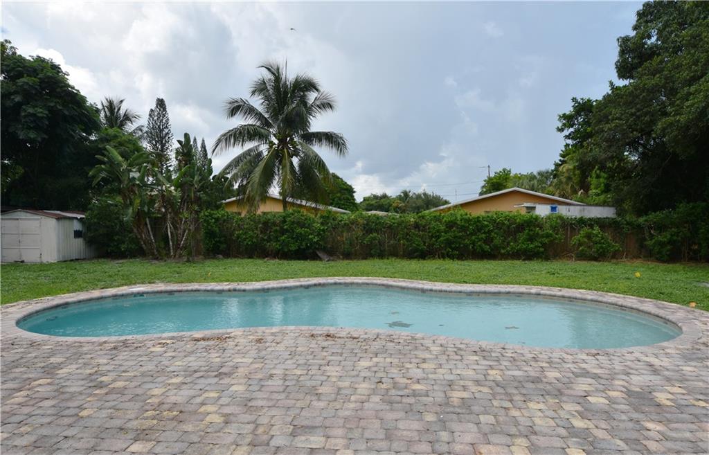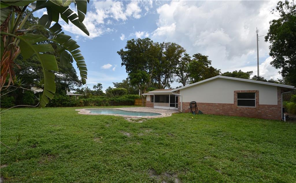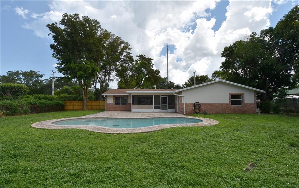 AMAZING HOME-FOUR BEDROOMS, POOL & 2 CAR GARAGE! Just painted inside & out! New fence & gates Almost 1/2 acre! HUGE living room–a LARGE window lets in a ton of light. Ceramic tile throughout. Bdrms have NEW PLUSH carpet. Master BR has TWO WALK-IN closets. Master bath–new toilet, new MARBLE TILE floor & MARBLE TILE shower, a"rain"showerhead, double sinks vanity & lighting. Guest bath new toilet, vanity & lighting. Eat in kitchen HAS new SS APPLIANCES, wood cabinets & GRANITE counters & a pass through window to the LARGE ceramic tiled screen room. 4th bedroom walls can be removed to add to family room- French doors lead to the sceen room. Brick pavers surround patio & sparkling large pool.A cabana bath adds to the pool area. Close to schools, BEACH, GOLF COURSE, SHOPS & RESTAURANTS.