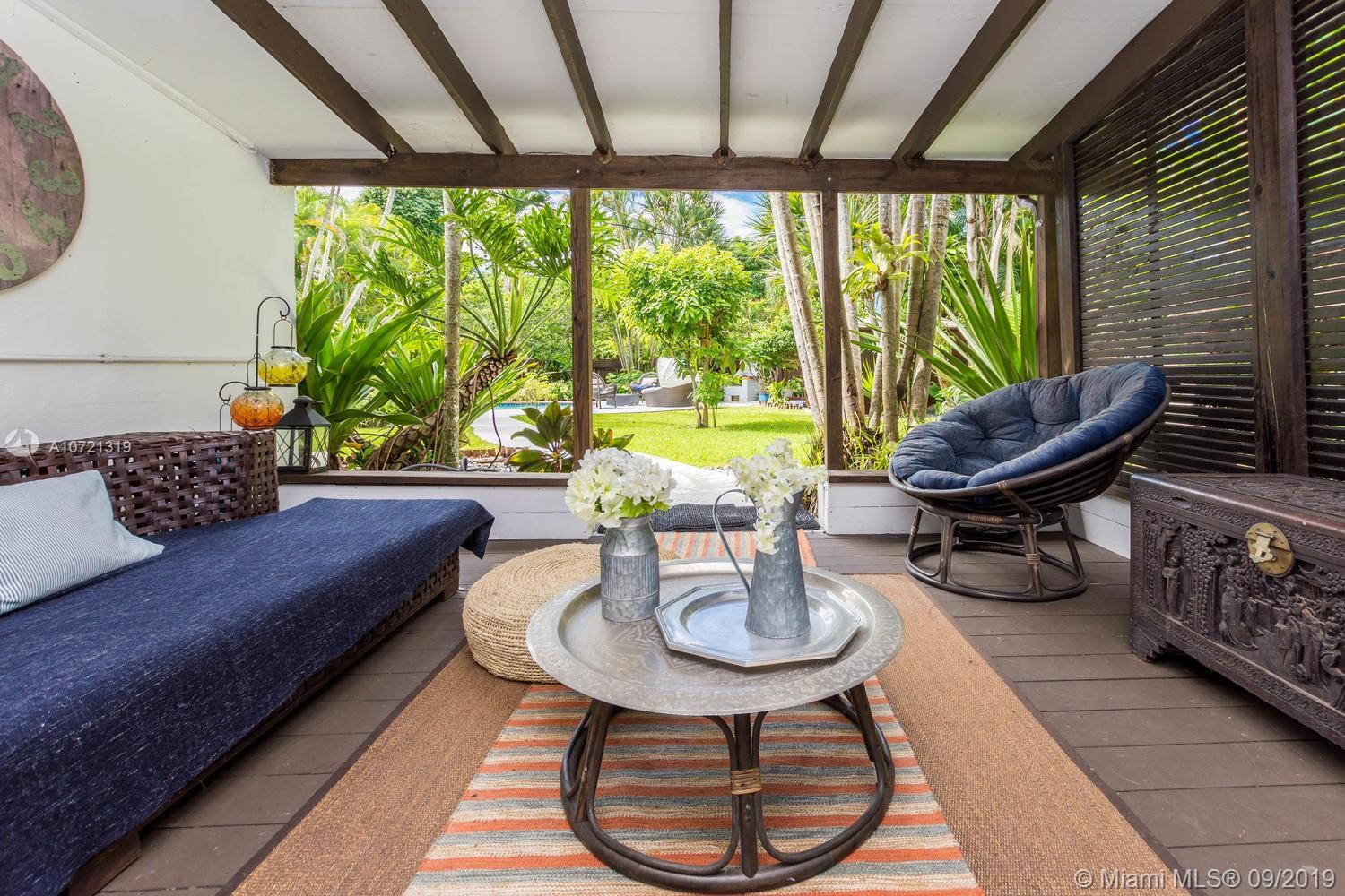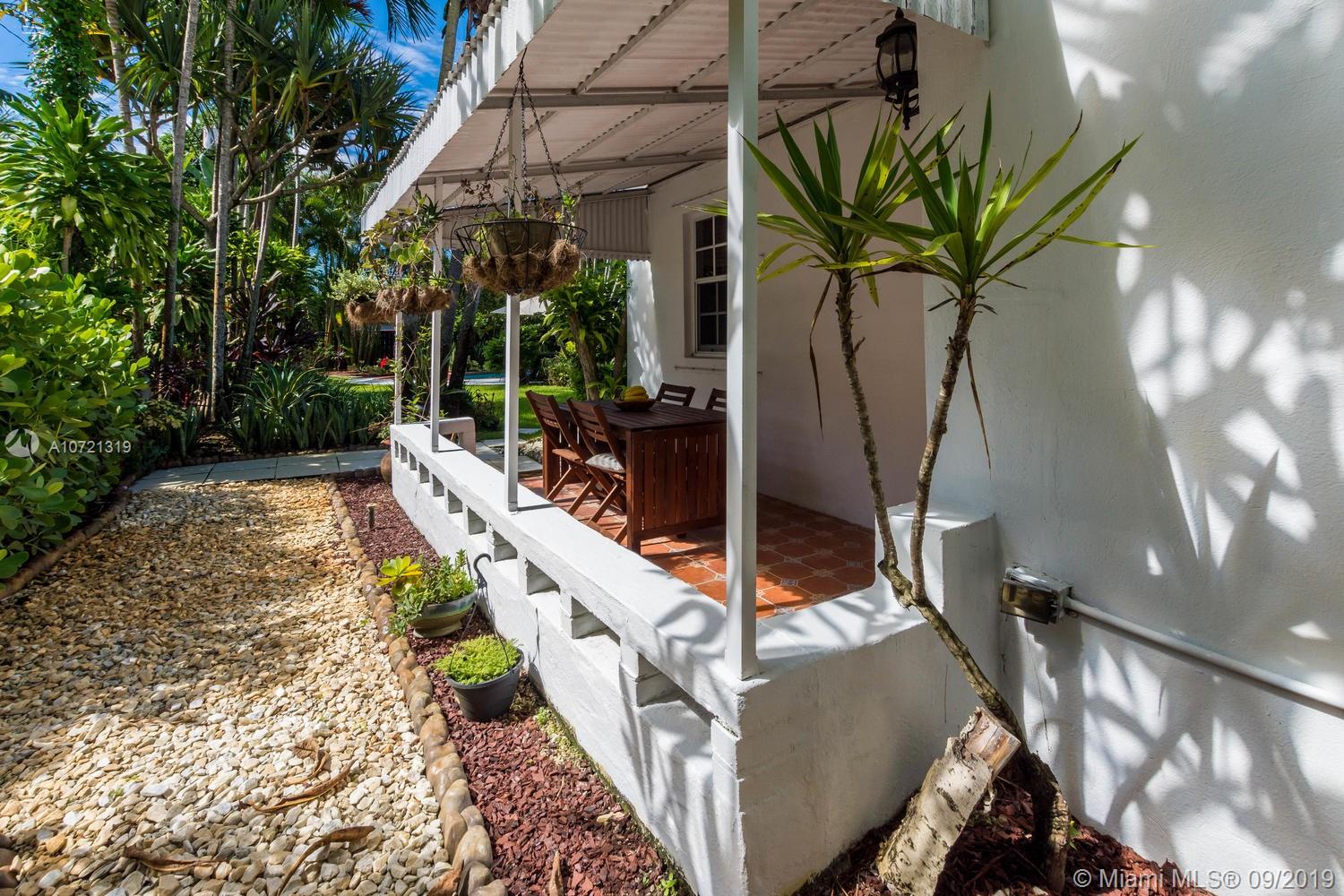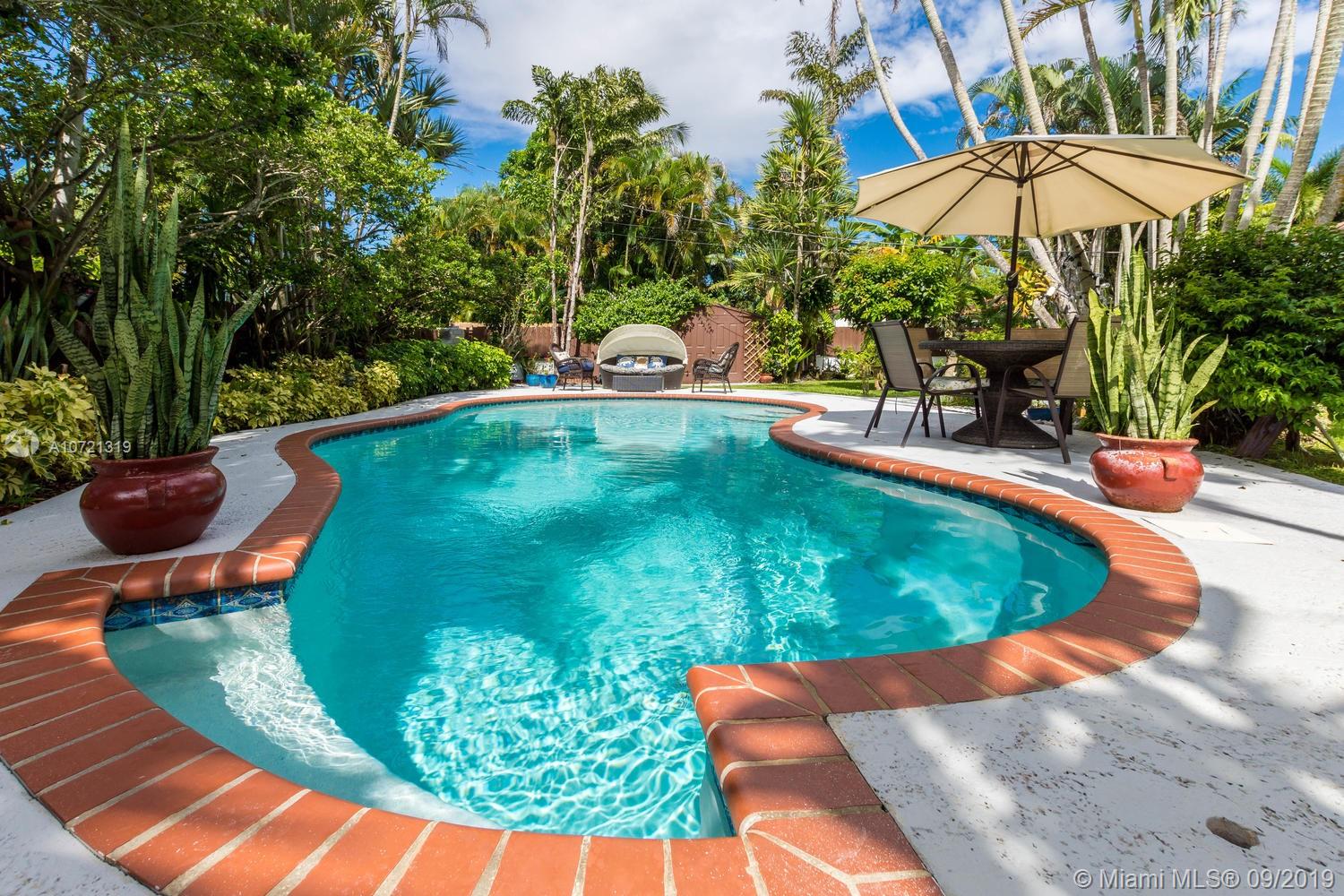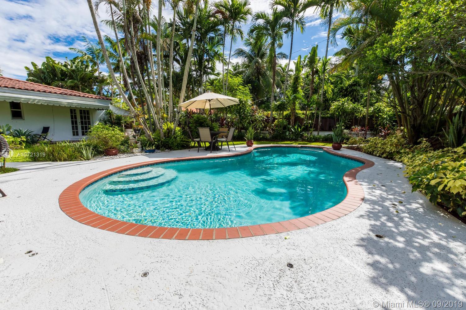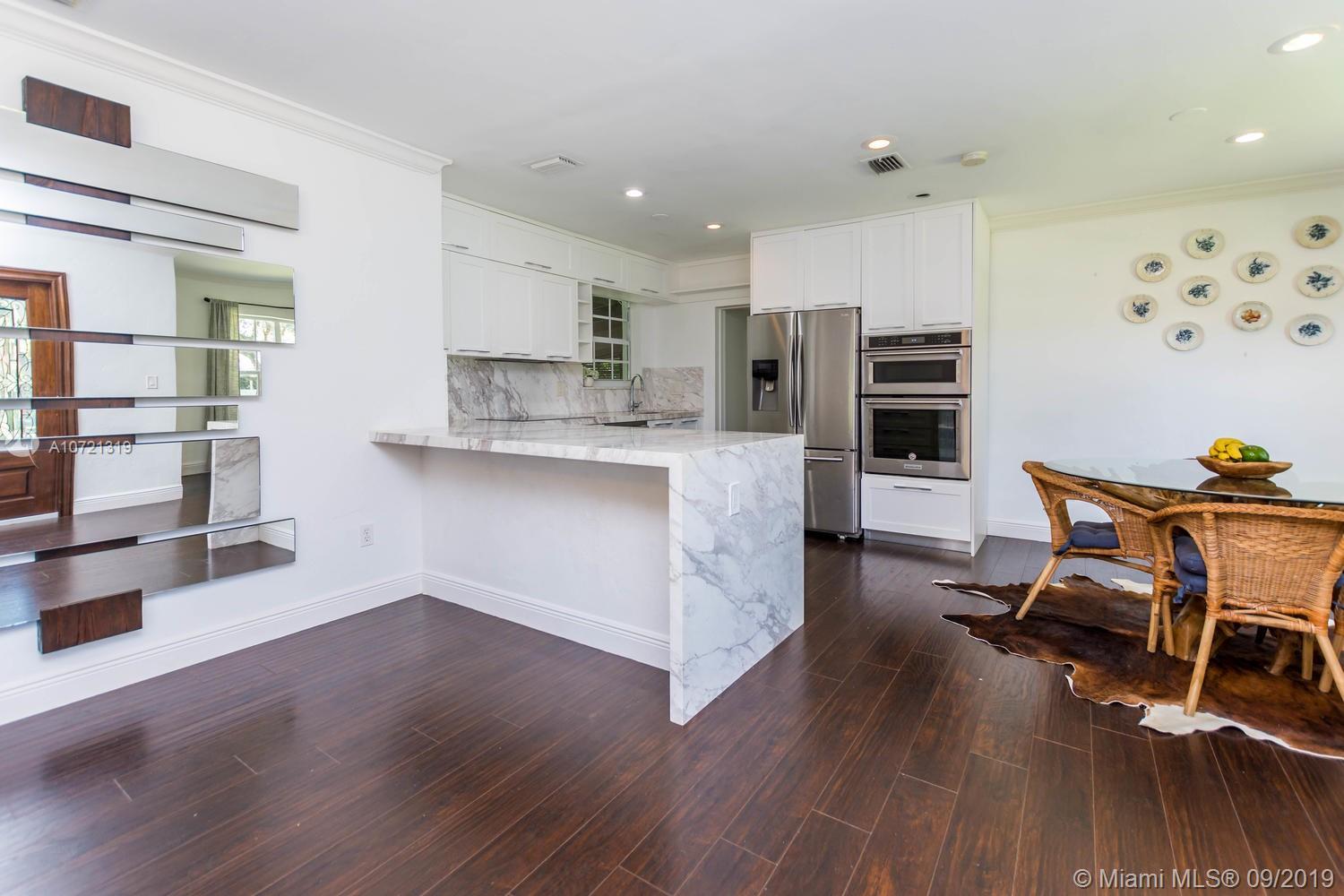 Welcome HOME! Resort-style living... swimming pool RETREAT! Fabulously classic Miami Shores "Charmer" featuring original 1940's architectural style...Enjoy the 'Best of Both Worlds'! Beautiful modern open kitchen and top-of-the-line appliances w/elegant Carrera marble 'waterfall' counter and breakfast bar. This home is wonderful to entertain in, with in-door & out-door living room and dining room...all leading to the private and lushly landscaped and tranquil backyard and pool! Rich wood floors and open concept. Located on a quiet street with cul-de-sac. Both bathrooms are tastefully updated, too! Garage was converted into the 3rd bedroom with permits. This special home will go fast!