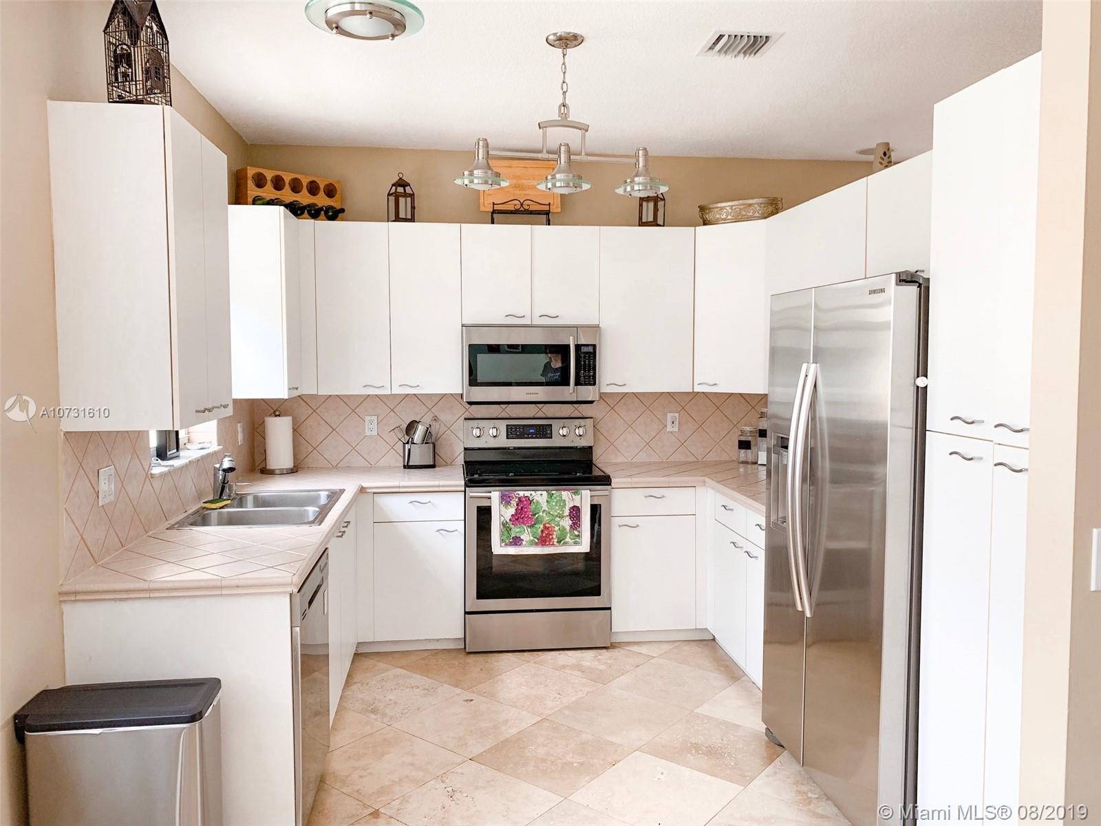 Beautifully updated home in gated Governers Run in Towngate located in the prestigious west side of Pembroke Pines with highly desirable "A" rated schools. Formal Dining and Living, Open Family Room, Breakfast nook and kitchen features Samsung Stainless Steel appliances (4yrs old). First floor has Travertine flooring leading up the stairs to the 3 bedrooms. Gorgeous Master en suite has been tasteful updated with large plank "wood look" tiles (in all bedrooms). Huge fenced in yard with paved patio area perfect for entertaining. New water heater and Carrier AC with 5 year transferable warranty. HE laundry Room. Accordion shutters on second floor. Wired for indoor and outdoor sound systems. Huge walk in closet in master with attic space, plenty of storage.