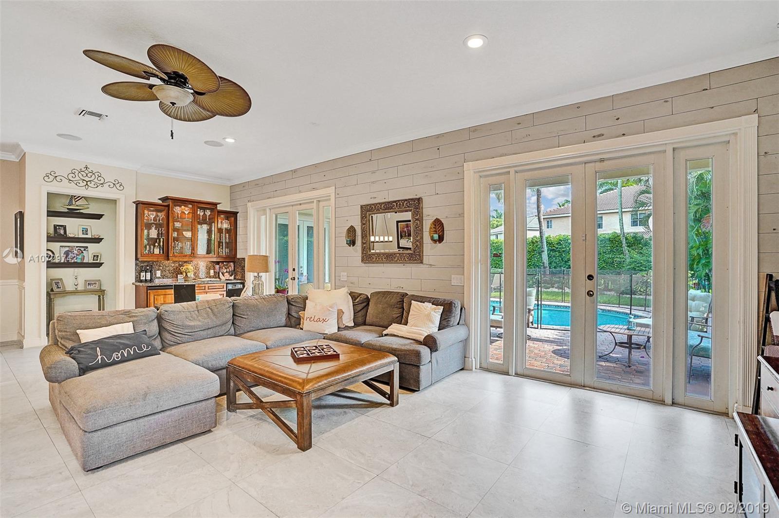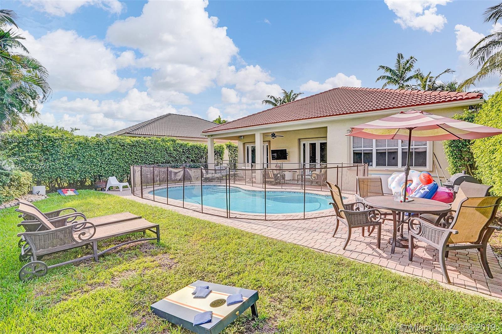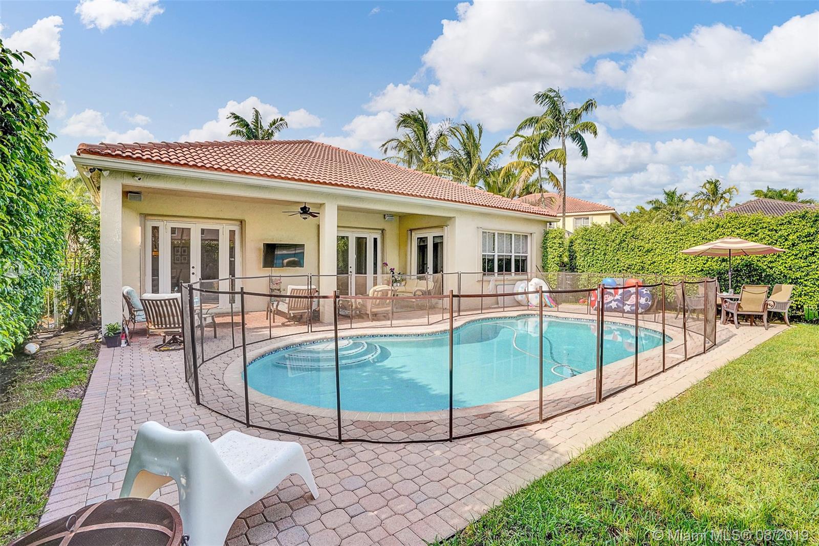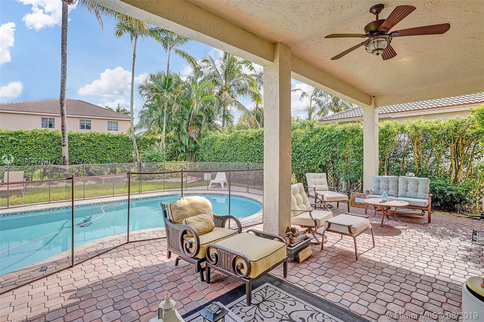 "Charming Savanna 1 story residence with 4beds /2baths/pool and an extra bonus Theater room built in the garage. Very nice curb appeal with professional landscaping w/beautiful plants and lighting .Home has elevated ceilings and great open floor plan, with beautiful modern trends. Additionally has RENOVATED NEW PORCELAIN SPANISH FLOORS,UPGRADED DOORS toward the back patio ,NEWER AC UNIT, an updated Wooden kitchen with newer SS appliances and much more...The property offers according shutters and roof is in great condition. Amazing community pool and just a few short blocks to a huge park w/ Tennis, Basketball, Volleyball, jogging and bike paths. Close to shops and restaurants, Sawgrass Mills Mall. GREAT LOCATION! WESTON BEST SCHOOLS!!"