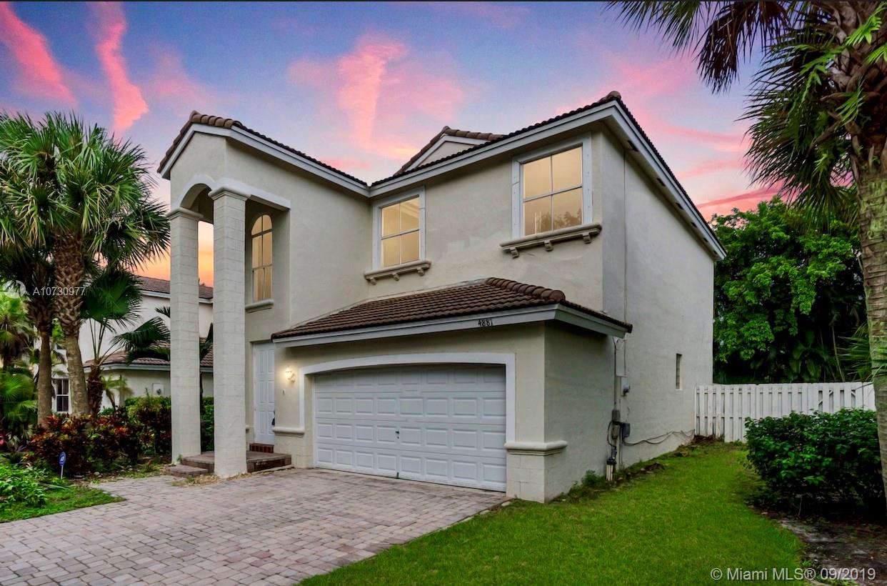 Beautiful and spacious single family home located in quiet tree lined street. Lots of nature light, with high volume ceilings and recessed lighting throughout the house. First floor has foyer entrance, living area, decorative iron cast railing stairs. Open concept kitchen with granite countertops, dining room and family are overlooking backyard, half guest bathroom. Second floor has new italian porcelain tile throughout, huge master bedrooms with regular and walk-in closet, master bathroom has separate shower, bathtub, dual sinks and enclosed private toilet. Upstairs are two spacious bedrooms and spacious loft/office area looking down on living room. Big and enclosed backyard perfect entertaining and outdoors cookouts. Home is nestled in gated community.Welcome Home