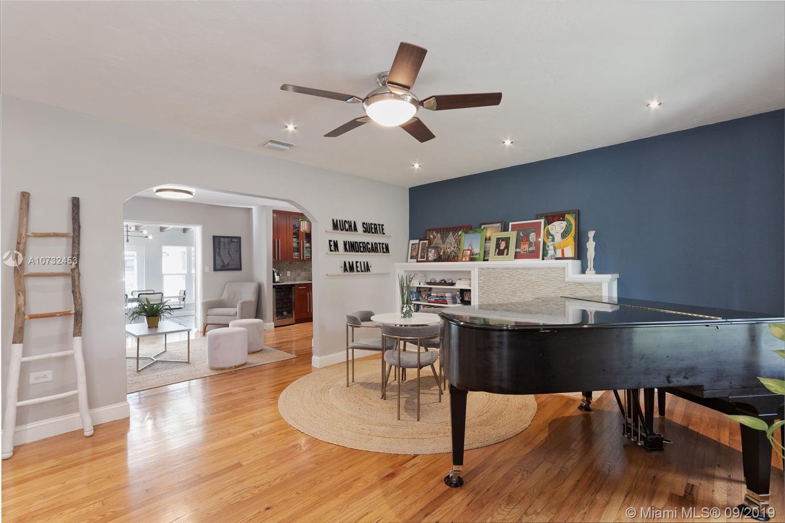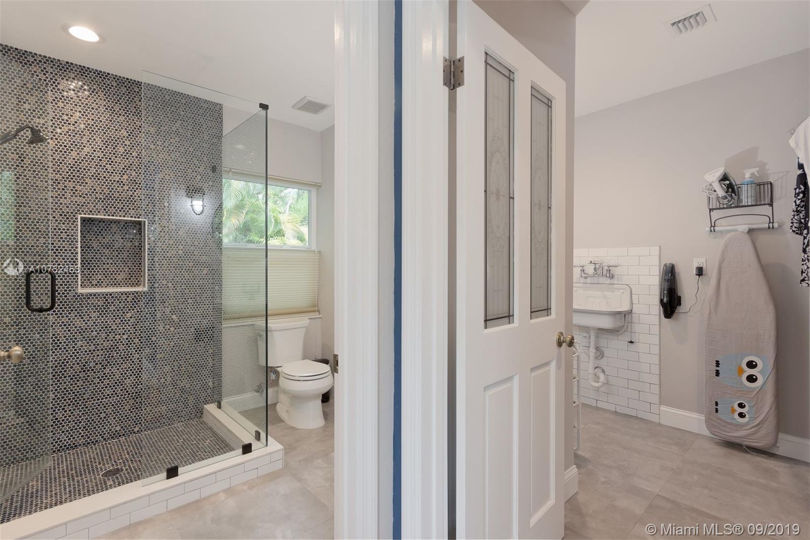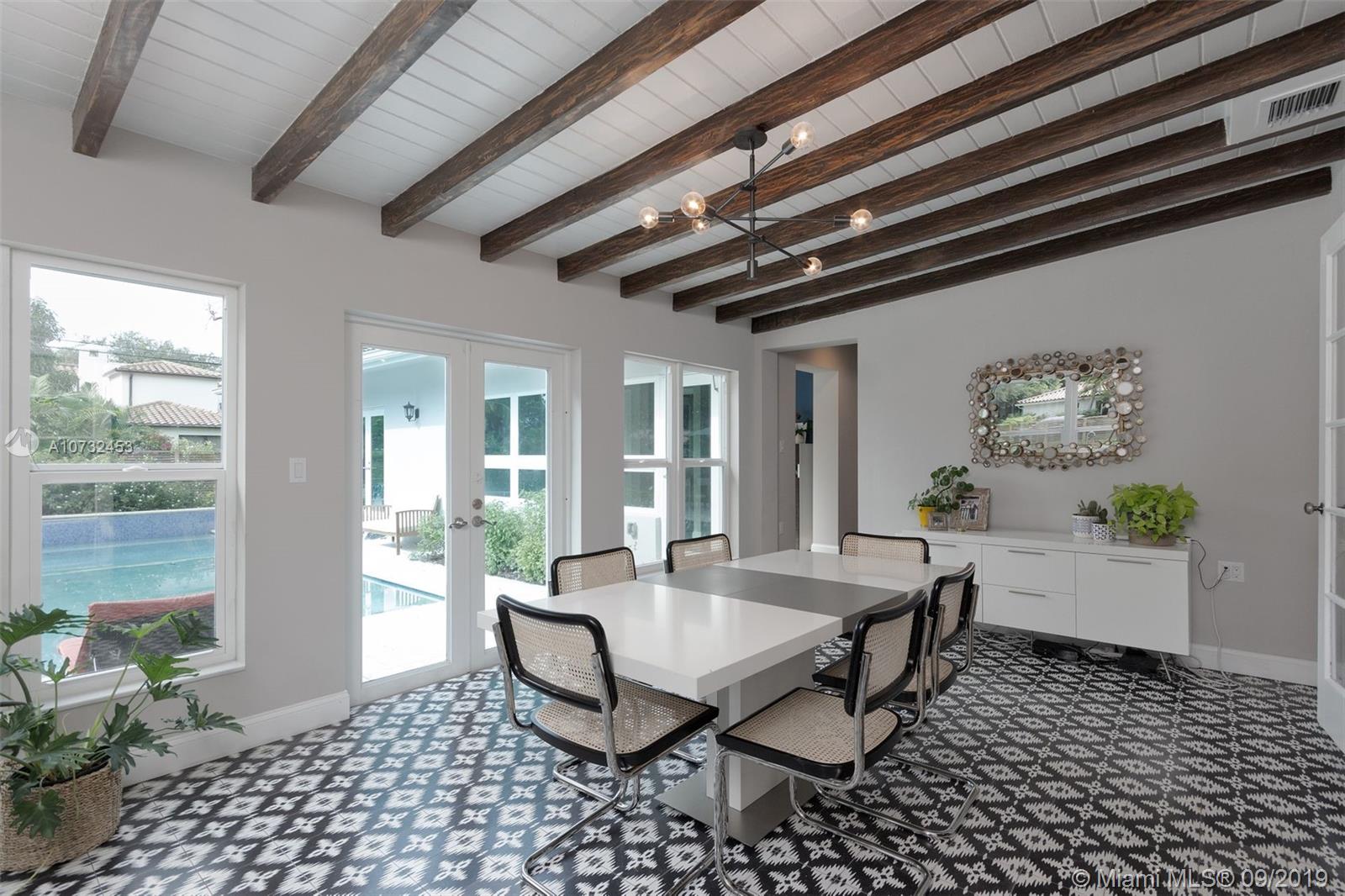 5 bedrooms and 4 full baths in this renovated Miami Shores home. Big corner lot, fenced yard with patio, outdoor kitchen and beautiful pool. Spacious living room ,dining room open to the kitchen and family room overlooking the pool and garden. The kitchen is updated with stainless steel and granite . Wood and tile floors, impact windows and doors, two zones of central a/c. Master bedroom overlooks the pool and garden, has big walk-in closet and new bathroom. Big inside laundry room and utility room, attached one car garage. Move in condition.