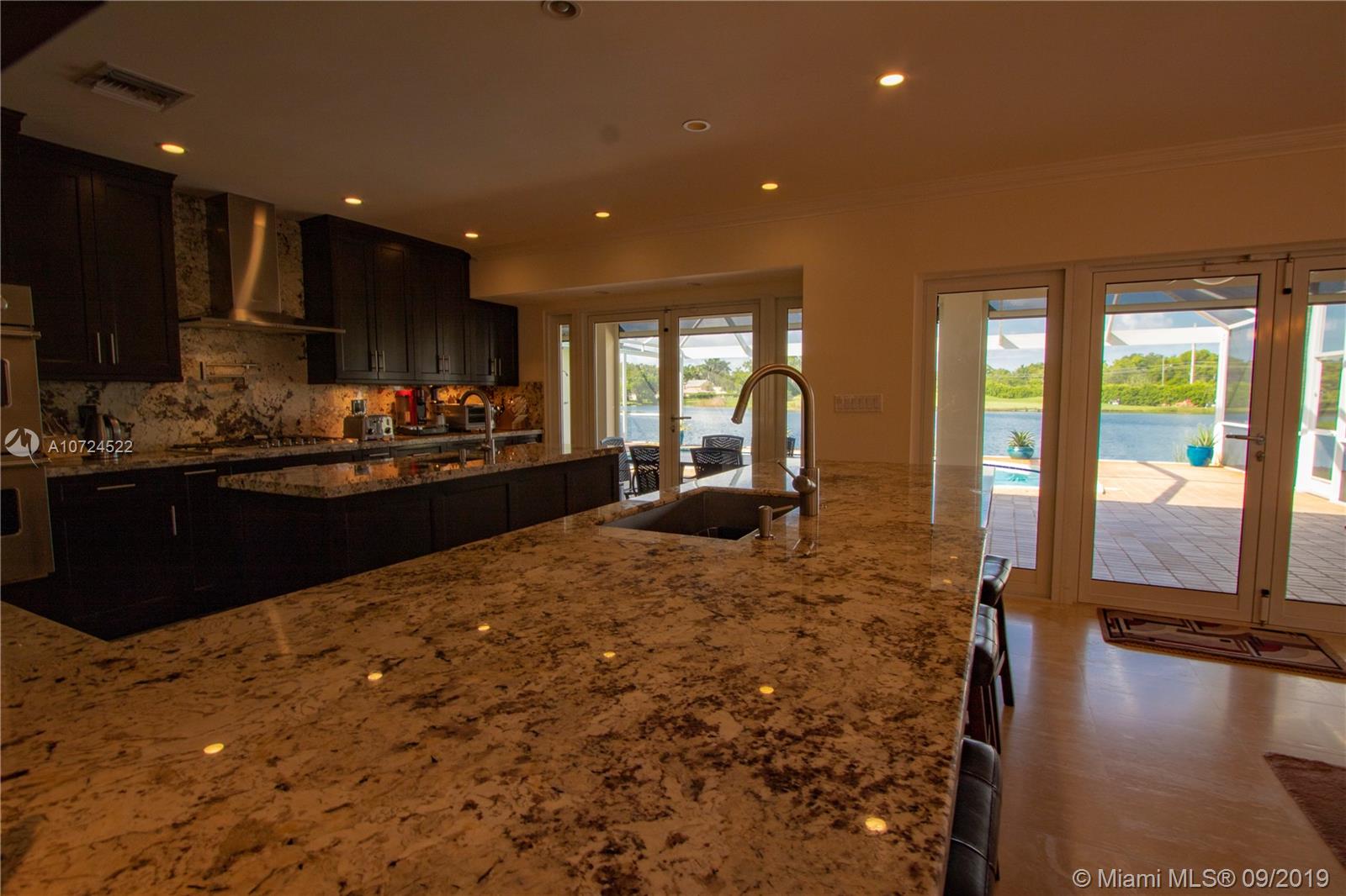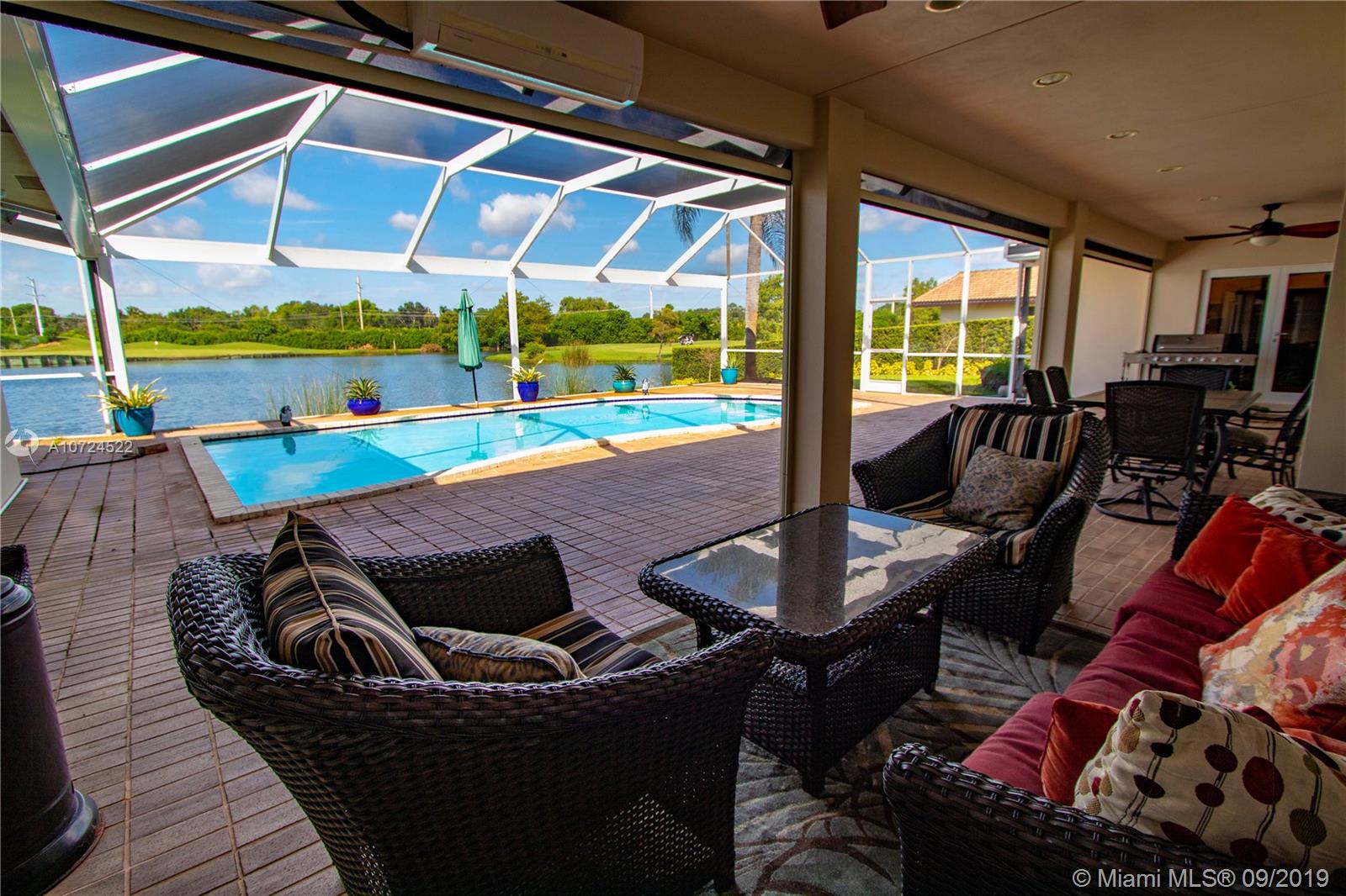 Enjoy beautiful sunsets at this magnificent Pool home with the best Lake and Golf Course view. Amazing caged Solar heated Pool. This beautiful updated home has high end appliances, marble floors, granite counter tops, crown moldings. Hurricane impact windows and doors. Electrical Awning on the porch, Brand new 3 Split Unit A/C system. Hurricane proof garage door. It has a Tesla Charging Station. Brand New Sub Zero Fridge, New Pool Cage. This home has it all! Everything is top of the line. Owner Financing. You will have to see this amazing home to appreciate it.