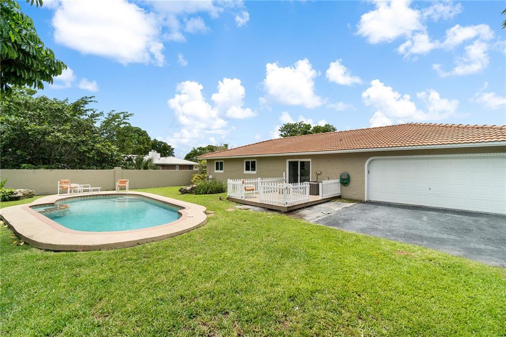 TALK ABOUT LOCATION AND A HUGE LOT!! 5 bed-2 bath home located in Coral Springs Country Club. Home features spacious floor-plan with lots of natural light, NEW impact windows throughout, large vaulted ceiling, tile flooring, NEW refrigerator; cook range; microwave, dishwasher, updated kitchen with bar & pantry. The property includes all new kitchen appliance and new kitchen counter tops. Spacious bedrooms with ample closet & built-in space. Master bathroom has its separate shower & roman tub. 11 years old roof and NEW pool pump. 2 outside patio decks built for entertaining, attached 2-car garage, pool and fenced yard. Centrally located - close to major roads, shopping and dining. MUST SEE!