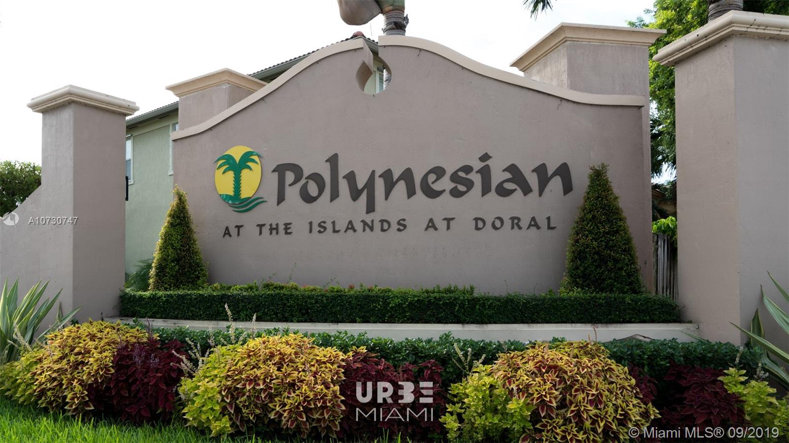WONDERFUL CORNER TOWNHOUSE, IN THE VIBRANT COMMUNITY OF DORAL IN POLYNESIAN ISLAND AT DORAL, SPACIOUS 4 BEDROOMS, 2 & 1/2 BATHROOMS, AND 2 GARAGES TOWNHOUSE, LARGE BACKYARD FOR YOU AND YOUR FAMILY TO ENJOY. CLOSE TO SCHOOL RONALD REGAN, ROLANDO ESPINOSA, AND EUGENIA B THOMAS IF LIKE BIKE RIDING, WALKING AND JOGGING THIS IS THE PERFECT COMMUNITY. THIS COMMUNITY OFFERS TWO CLUB HOUSES WITH AMENITIES SUCH AS GYM. BASKETBALL COURT, TENNIS COURT, AND POOL, ALSO FAMILIES CAN ENJOY AT THE LEGACY PARK WITH A MANY AMMENITIES TOO.