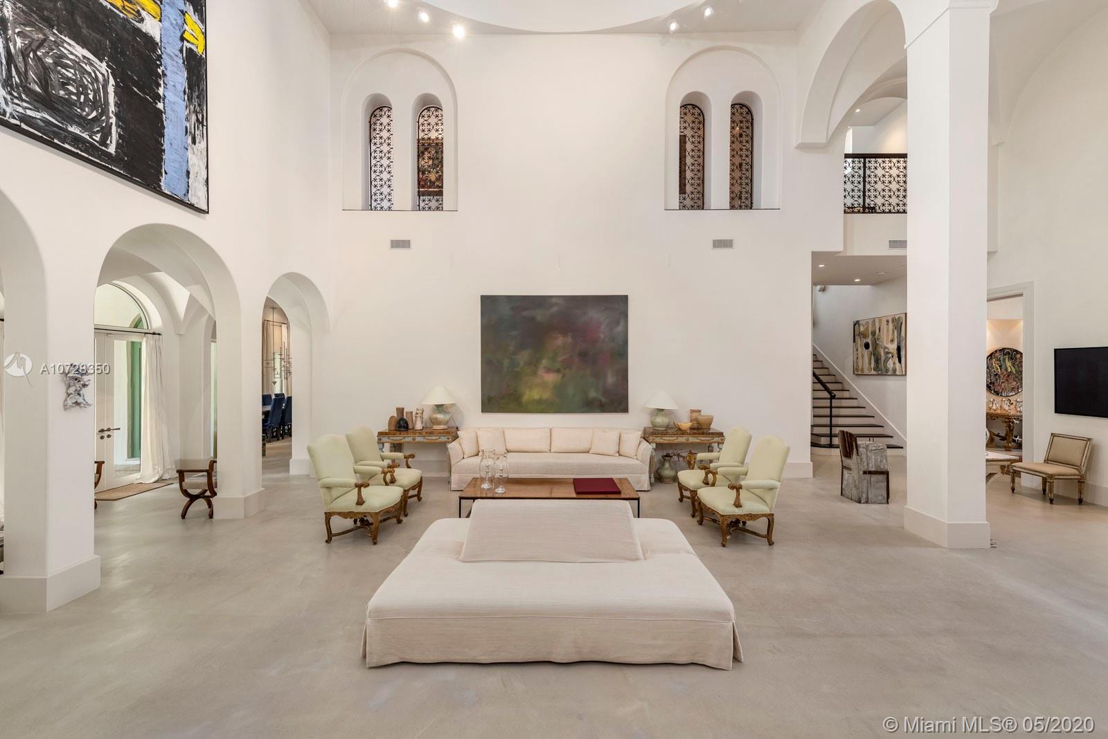 Located on exclusive Star Island, this exquisite estate offers a world of privacy & luxury. Tucked behind hand-crafted gates, an expansive motor court leads to a grand entrance. An incomparable living room w/stunning 35’ detailed domed ceilings boosts skylights & exquisite arched windows/doors. Interior features: formal dining room, library, office w/separate entrance & full bathroom, 2 grand stairways, beautiful iron work & gourmet chef’s kitchen w/ top-of-the-line appliances. The grand master bedroom features a rooftop terrace, seating area, office area, expansive built-out closet & a spa-like master bath, marble floors & countertops, a floating tub & oversized marble shower. The verdant outdoors are complete w/luxuriant gardens, summer kitchen, dock, beautiful pool & wide bay views.