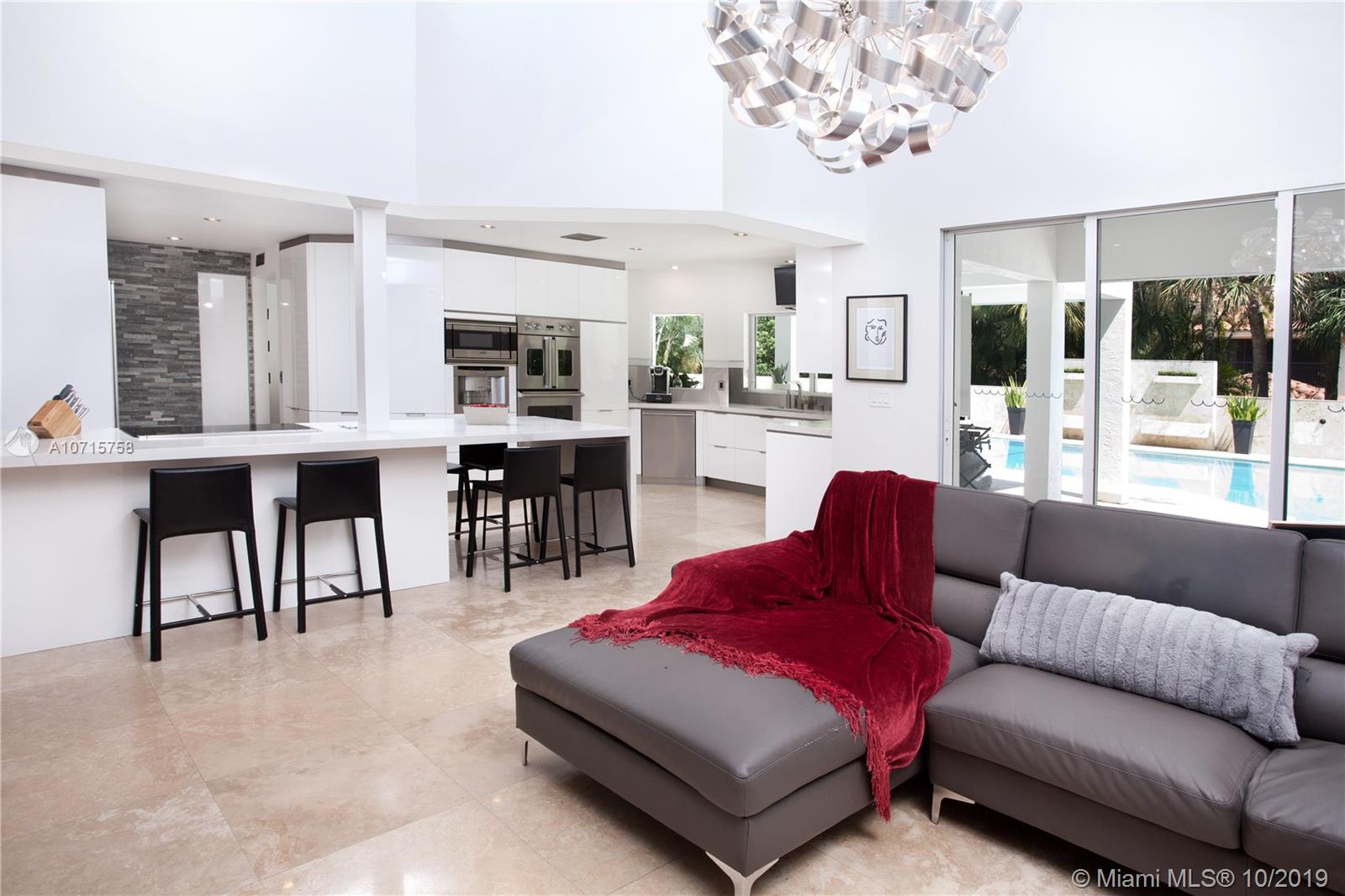 PRICE REDUCTION! This Modern 2-story home in Islands of Cocoplum was updated in 2017 and has a 2019 roof. Double glass doors open to the foyer leading to living rm & dining rm. This light-filled home has views of pool & covered terrace from living rm, dining rm, kitchen & family rm. Updated kitchen has top-of-the-line appliances & a large quartz eat-in counter. On 1st flr there is a guest bedrm & bathrm + staff quarters. The middle level features 2 bedrms with a jack-n-jill. The main ste occupies the entire 2nd flr, w/his & hers bathrms, walk-in closets & office/nursery w/large walk-in closet. The large pool area w/fountain & large covered terrace is perfect for entertaining. The house has been painted inside & out, is elevated & has 3 car garage. Some TV sets are not included in sale.
