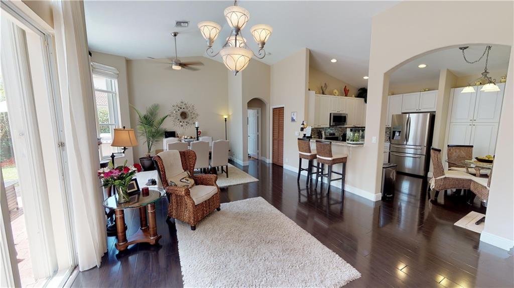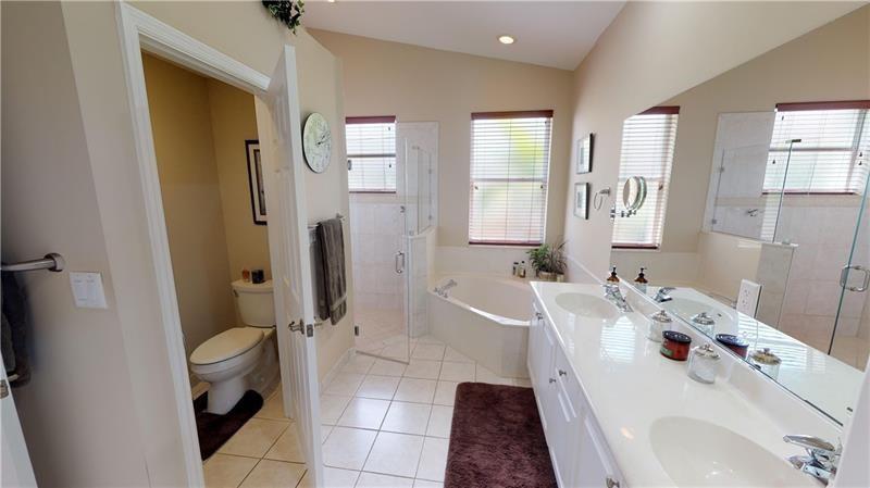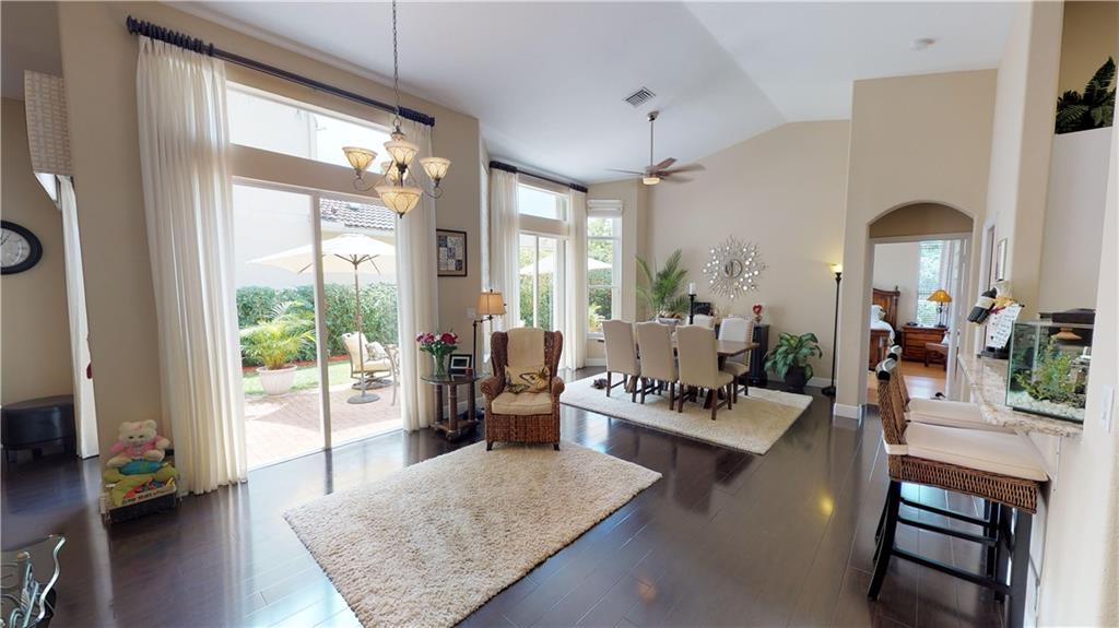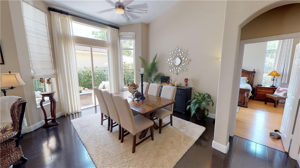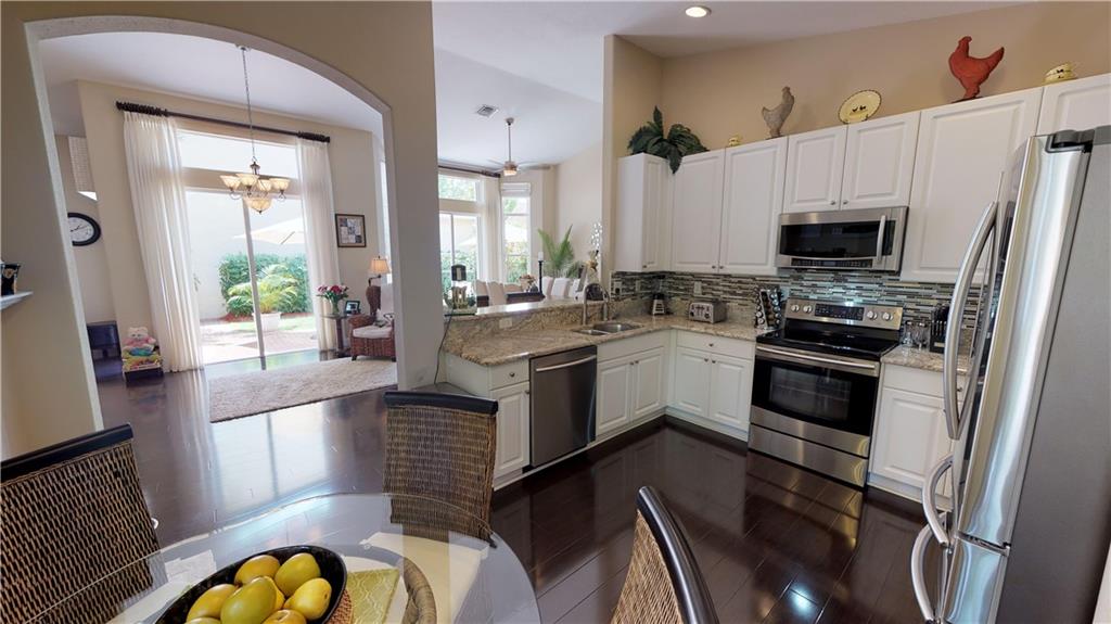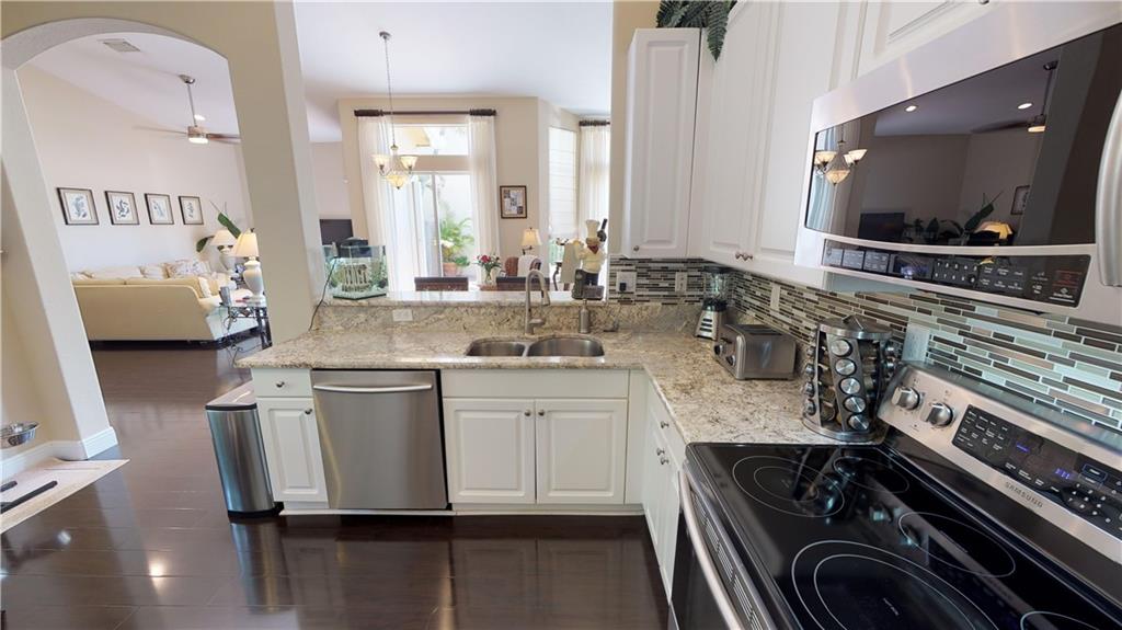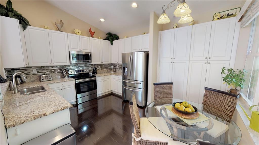 SUBSTANTIALLY REMODELED AND PRISTINE OPEN CONCEPT FLOOR PLAN WITH HIGH VAULTED KNOCKDOWN CEILINGS. REMODELED EAT-IN KITCHEN WITH LIGHT GRANITE COUNTERS, GLASS TILE BACKSPLASH, UNDERMOUNT DOUBLE SINK, LOADS OF STORAGE WITH A DOUBLE PANTRY, AND TOP-OF-THE-LINE SAMSUNG STAINLESS STEEL APPLIANCES. KITCHEN IS OPEN TO THE GREAT ROOM, DINING, AND SITTING AREA WHICH ALLOWS FOR GREAT ENTERTAINING. HIGH-END CUSTOM WINDOW TREATMENTS THROUGHOUT. BEDROOMS ALL HAVE BAMBOO WOOD FLOORING AND THE LIVING AREAS HAVE A DARKER WOOD LOOK LAMINATE W/ 5- INCH BASEBOARDS, NEW REMOTE-CONTROLLED CEILING FANS, NEW WATER HEATER, LAUNDRY ROOM, MASTER BATH HAS DUAL SINKS, FRAMELESS SHOWER, AND ROMAN TUB. MASTER BEDROOM BLACKOUT CUSTOM DRAPES TO SLEEP IN ON THE WEEKENDS, CUSTOM BUILT HIS & HERS CLOSETS, NEW GUTTERS