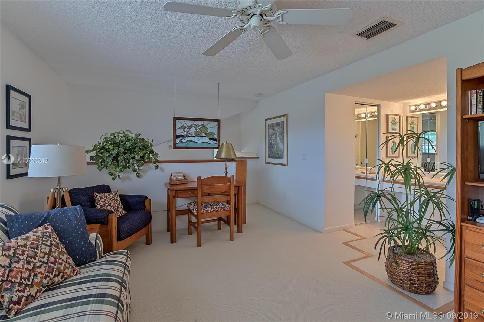 Beautiful, 2/2.5 Barclay model available in one of Plantation's most desirable neighborhoods, Chelsea II. This home offers an open floor plan with vaulted ceilings, formal living and dining areas, a large master suite with walk-in organized closet, updated master bath, neutral tile in all living areas, spacious kitchen with tiled counter tops and backsplash, Oversized screened in patio with lush greens and a tranquil lake view, one car garage, second upstairs bedroom is currently used as a loft, however, perfect for guest room or office and includes full bath and walk in closet, Accordion Shutters, Great location that is easily accessible to parks, recreations, Ft. Lauderdale airport and major highways. HOA handles all landscaping and building exterior. Community pool & clubhouse.