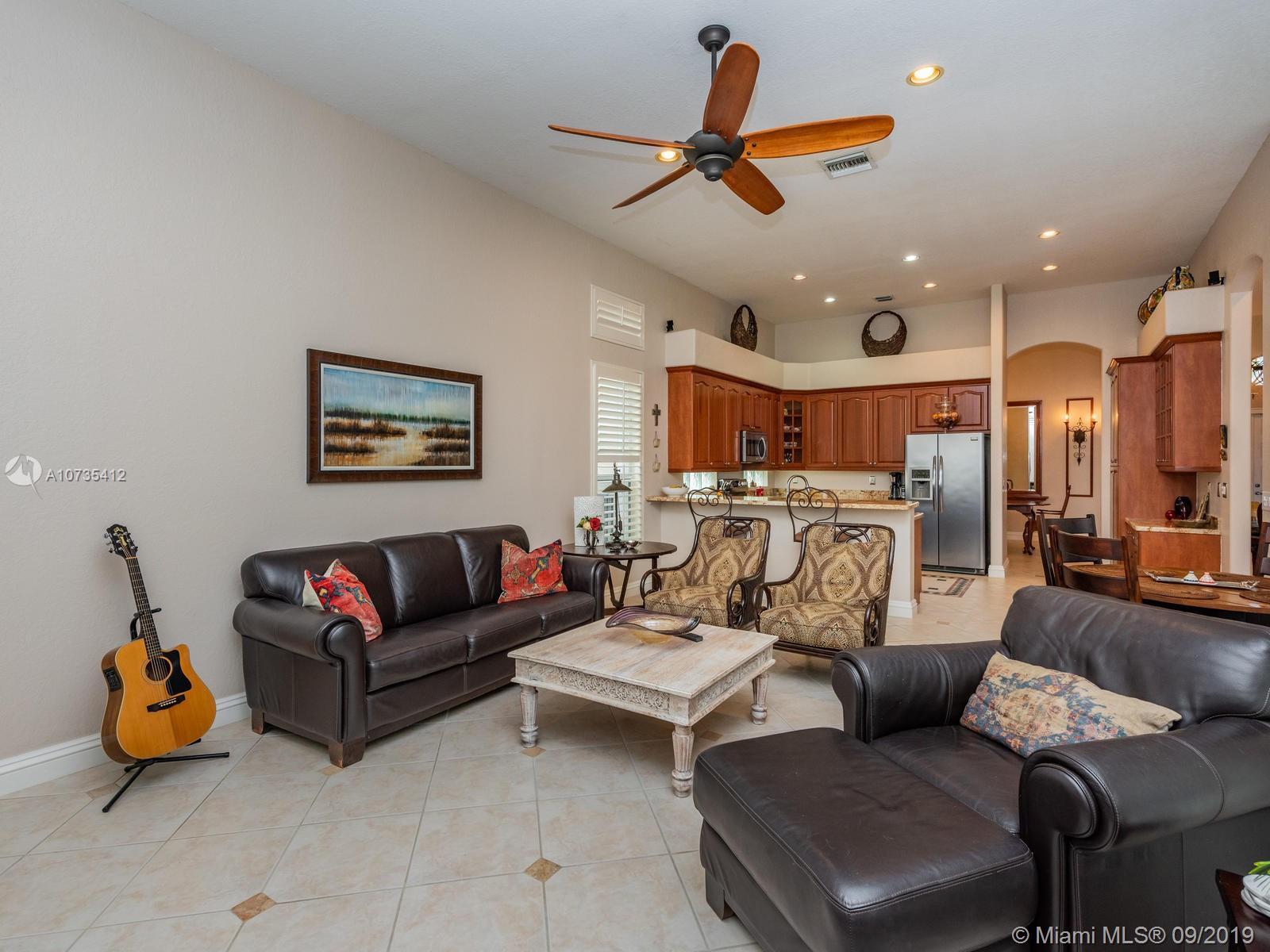 Spectacular lakefront view from this contemporary 4BR/3BA one story in Silver Lakes/Pelican Sound. 4th features french doors - office/bdrm or gym. Designer upgrades thru-out. New granite/upgraded appliances, plantation shutters in living & family rooms, wood laminate floors in master & 4th, designer tile in main areas, renovated master & secondary baths with modern finishes, two bedrooms feature wood-like tile, majestic dining room chandelier, recessed lights thru-out, new washer/dryer & water heater, oversized lake lot w/fenced backyard & plenty of room for a pool. Gutters & Accordion hurricane shutters. Newer A/C with warranty. The exterior was painted & new front landscaping installed. An automatic sprinkler system/lake-fed. Guard gated with roving patrol. 3 Way split floorplan.
