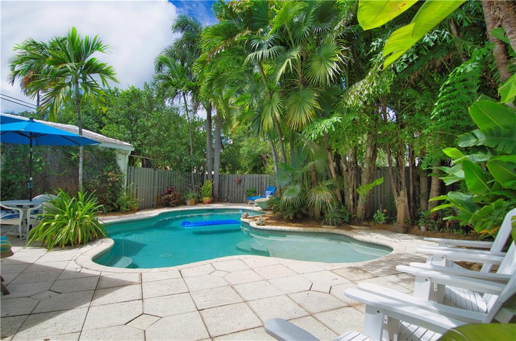 This classic Victoria Park home is located on a spacious corner lot a short walk to Las Olas. The split floor plan is centered by a lovely living room with gas fireplace, beautiful original hardwood floors and stunning garden views from the wrap around wall of windows and sliding glass doors. The centrally located kitchen opens to the dining and great rooms with a breakfast bar and features updated Kenmore stainless steel appliances including gas stove. The home is nestled in a park like setting that features mature trees, professionally landscaped gardens and truly custom designed pool. A newly renovated a/c double car garage with lots of storage, W/D and water filtration system make this a truly special find. Developers this RC 15 Med-Density Zoned lot is 9327 SQ FT per county records.