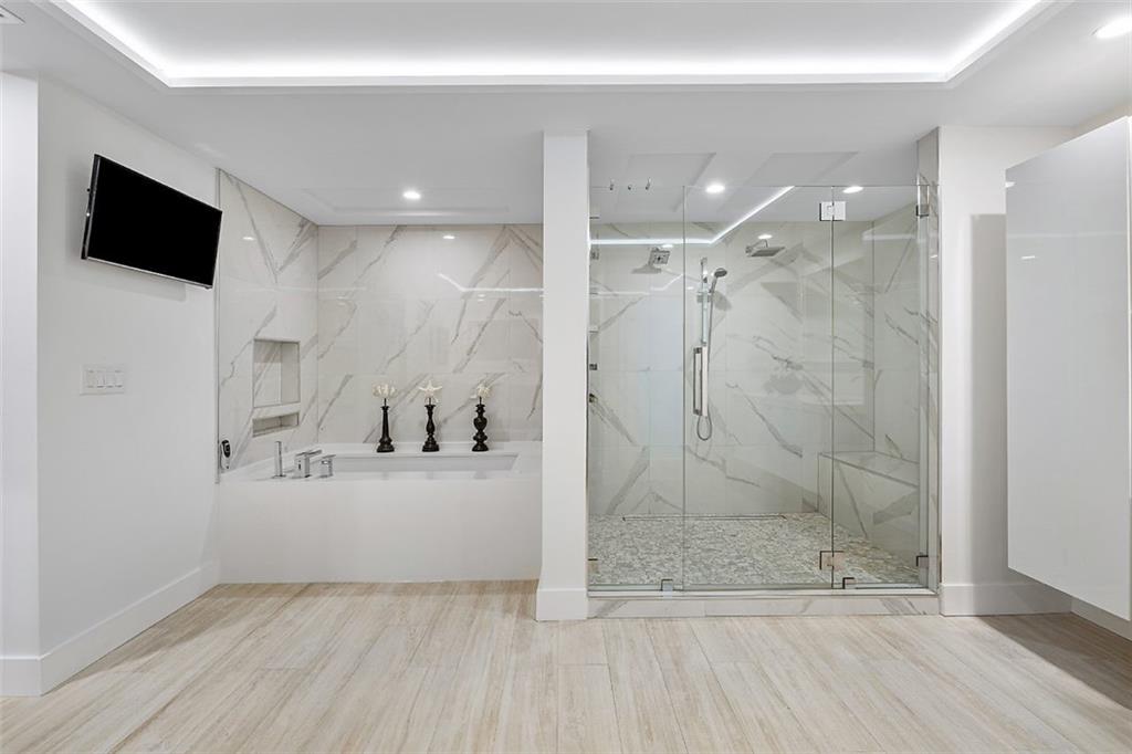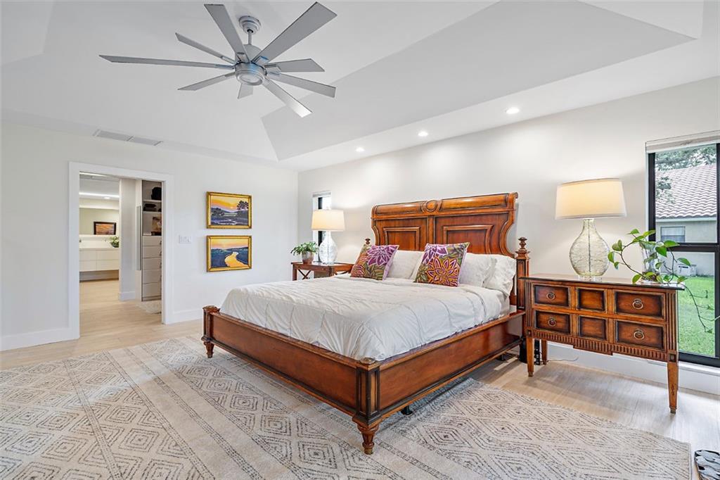 Entire home has been redesigned & reconstructed to perfection w/the finest materials! You will be wowed the moment you step thru the impressive Double Door Entry! Jaw dropping kitchen takes center-stage in this Open Concept Design home! The crisp monochromatic white kitchen features custom European cabinetry, a massive island, large pantry, breakfast bar, quartz countertops w/waterfalls. Luxurious master suite w/a true 5 star spa-like bath w/soaking tub, huge shower, custom vanities & stunning lighting. Acoustics & sound are a priority in the media/music room w/cork insulation & double drywall. Other offerings: soft color wood like tile thruout the entire home, beautiful light fixtures, impact windows & doors! Serene lake views, oversize pool & alluring sunsets add to the homes splendor!