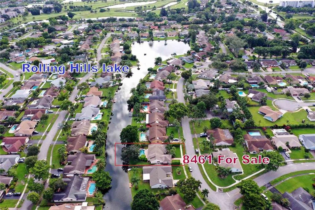 Rolling Hill Lake Estates, Ranch style, Updated 3 bed/2 bath/2 car garage on the lake, with a very private in-ground pool. No Homeowners Association and the community has street lights and sidewalks. Updated extra large kitchen with granite countertops. Master and guest bath both are updated and the floors are updated through-out. Accordion Shutters coverage on all windows and exterior doors. Updated garage door and roof was redone in 2004 with architectural shingles. Airconditioning was upgraded in 2017 and you have gutters in the front and rear of the house. Generator ready electrical with a plugin on the outside and special electrical panel inside. Top-rated schools and minutes to NSU, I595, whole foods, 15 plus restaurants, hospitals, and parks. This gem will move quickly.