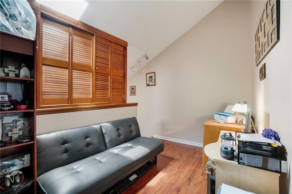 Beautiful, well maintained loft style townhouse! Home features 2 full master suites with walk-in closets, one downstairs and one upstairs. Upstairs also has loft style den/office with plantation style shutters that open and close for privacy. (Can easily be removed if buyer wishes!) High vaulted ceilings open the unit with natural light coming in through the skylight. Large, private front and back patios. Back patio features large storage shed with full size washer and dryer. New 3 ton A/C unit placed 5 years ago and new water heater placed 2 years ago! Stove and Fridge replaced in the last 5 years as well. Home is deeded 2 parking spots right in front of unit! Community pool included with low maintenance fee! Bring your buyers, they won't be disappointed!