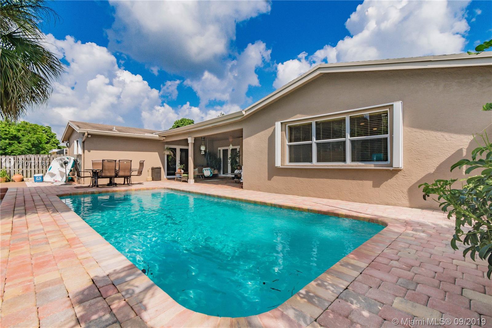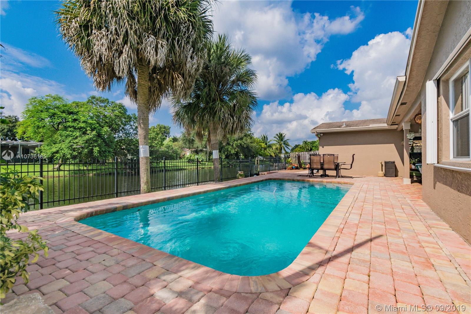 Here is what everybody looking for? Pool and waterview home. This 3 Bedroom, 2 Bathroom home was updated in 2000 to an Open Concept floor plan. Custom Kitchen with real wood cabinets and SS appliances. Very spacious master bedroom with a walk-in closet. 2 zone A/C system (2010) that cools the house down. Tile in main areas and laminate floors in bedrooms. Huge family room with cypress wood adorns the walls Nice size laundry room inside the home. 2 car garage with a brick paver circular driveway plus brick pavers in the front and back porch. The back patio has pavers around the pool has the canal view with a wood dock. Wood and aluminum fencing around the house. Within walking distance to Elementary and Middle (all A Rated). Accordion Shutters.The pool was resurfaced 3 years ago.Roof 06