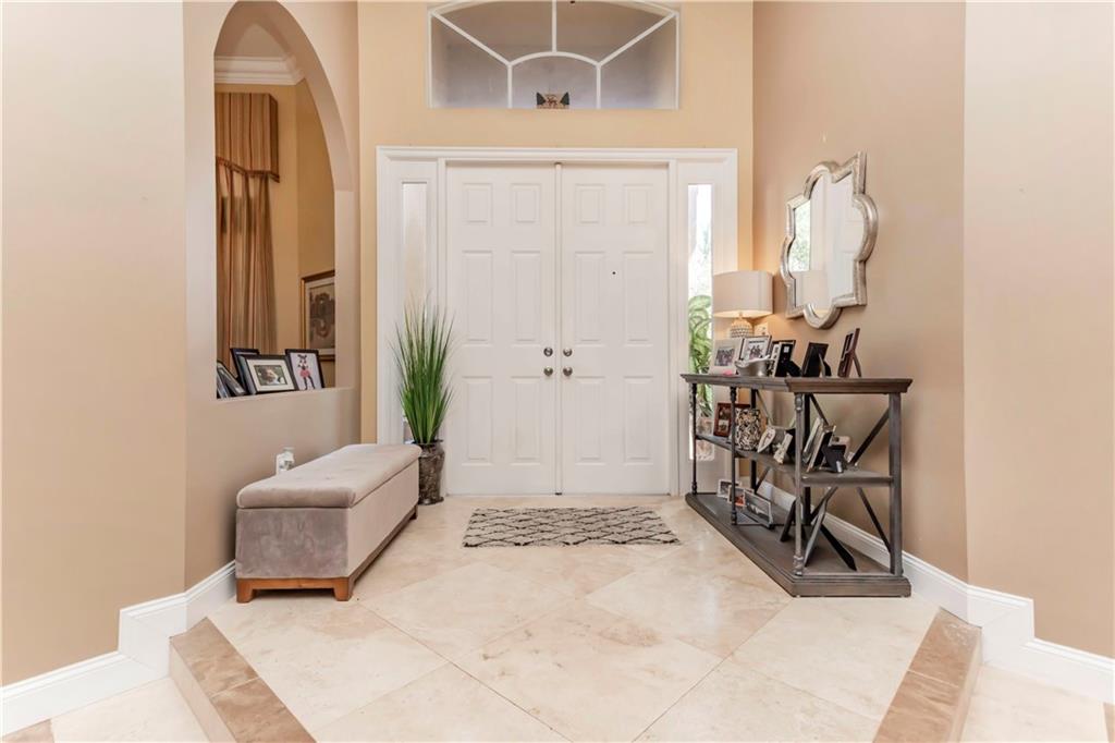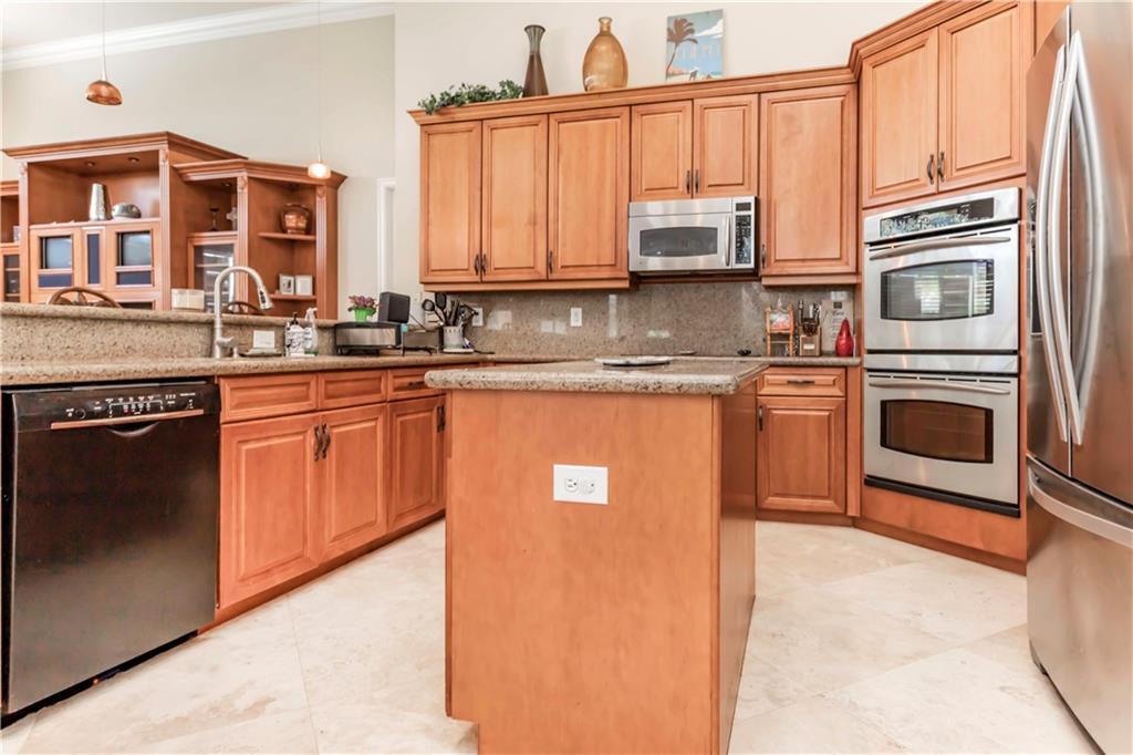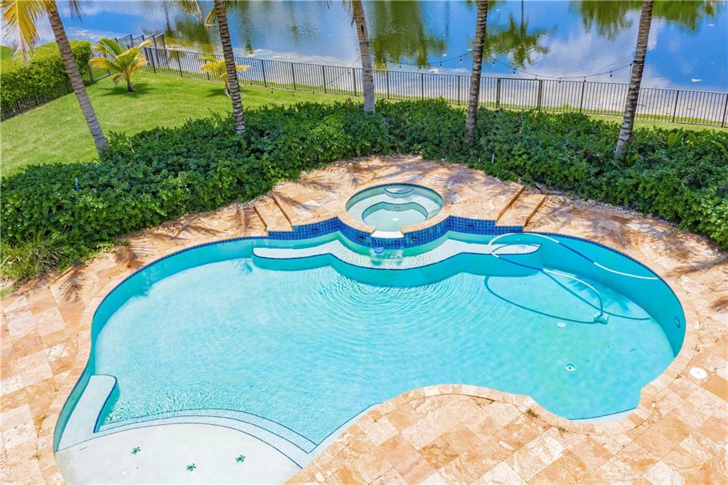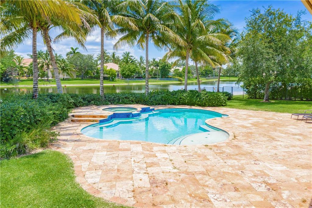 Gorgeous home with new travertine floors in all common areas, beautiful engineered wood in all bedrooms. Gourmet kitchen with all stainless steel appliances, 2 yr old refrigerator, newer Bosch dishwasher. Large snack bar, granite counter tops, real wood cabinetry and large pantry. Luxury spa master bath with large Roman tub, huge walk thru shower, his and hers separate vanities and separate toilet room. Backyard features lush landscaping, oversized pool with beautiful travertine pool deck, all overlooking the peaceful lake. Located on quiet cul de sac road with no thru traffic. Exterior freshly painted in September. Home security system. Walking distance to community playground.