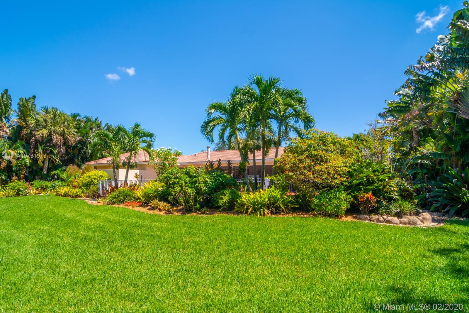 This beautiful home is situated on 1.08 acres of tropical paradise landscaping in the desirable neighborhood of Pine Tree Estates in Parkland. This spacious home has an open floor plan and impacted windows. The living side of the house has vaulted and high ceilings throughout with updated large ceramic tiles set on the diagonal and oak wood floors. All bedroom closets have custom wooden built-ins. Resort-style backyard living with extra large pool and spacious terracotta tile patio. Circular driveway in front with a side driveway leading to the over-sized three car garage.Family room has stone working fireplace with french doors.Custom made solid Cherry wood cabinets with granite counter tops and stainless steel appliances.Formal dining room has vaulted ceiling with custom crown molding.
