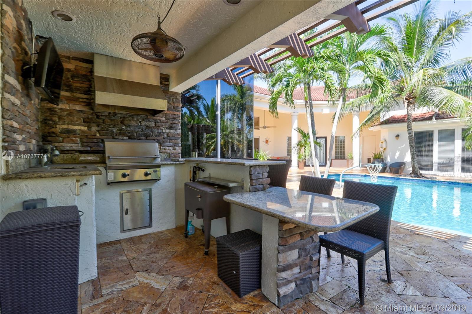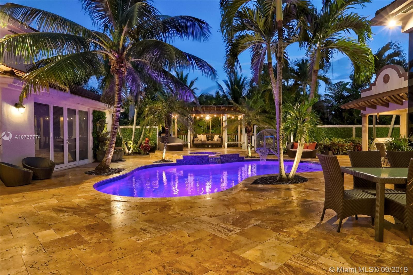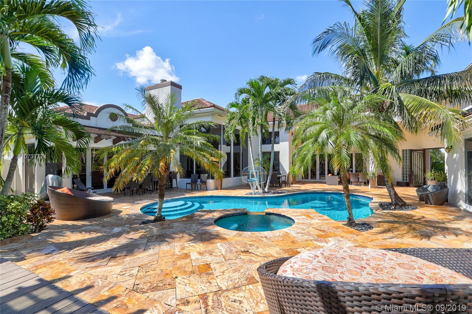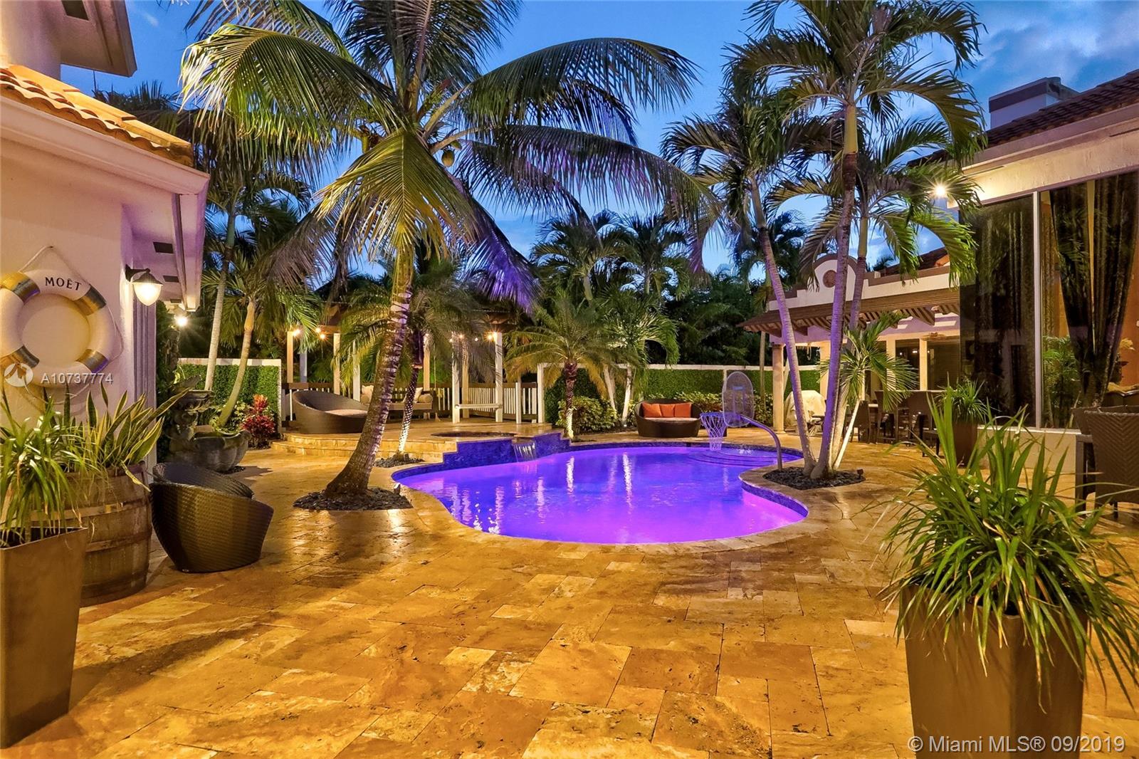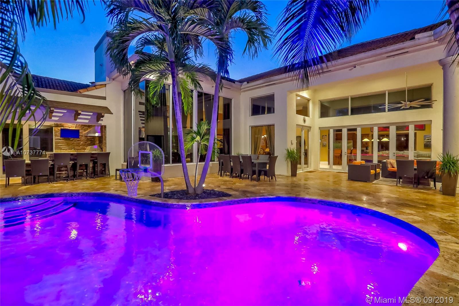 ONE OF A KIND CUSTOM ESTATE IN THE HEART OF PLANTATION ACRES. As you walk through the gate you enter into paradise! The courtyard pool area is incredible & includes an outdoor kitchen, covered patio area, countless lounging spots, custom lighting throughout, day bed swing, fire pit, & a pool w/waterfall & fountains. 5,000+ SQ FT, towering ceilings throughout, 4 car garage, separate guest suite, media room, basketball court, & much more! Beautiful kitchen w/island & top of the line appliances (Bosch/Viking/Subzero). Custom bar & gas fireplace in the formal dining room! The master suite is incredible w/custom double tray ceilings, 2 walk in closets, & fully updated bathroom. The guest suite is right off of the pool & is a 1/1 w/an oversized steam room! Do not miss out on this opportunity!!