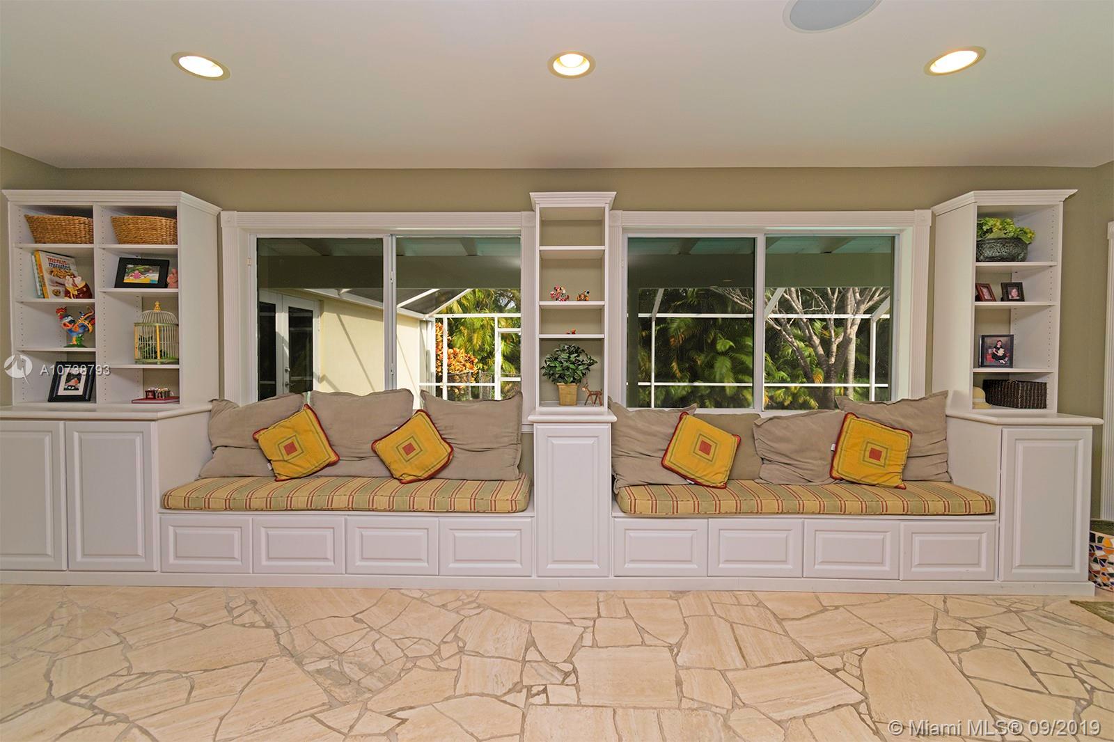 This 5/ 3.5 has a split plan that allows for multigenerational living with two large master suites. There is also a breakfast bar in the kitchen, large family room with built-in bookshelves and window seats that overlook the pool patio. Private, fenced backyard with screened pool patio, two-car garage and a whole house gas generator.