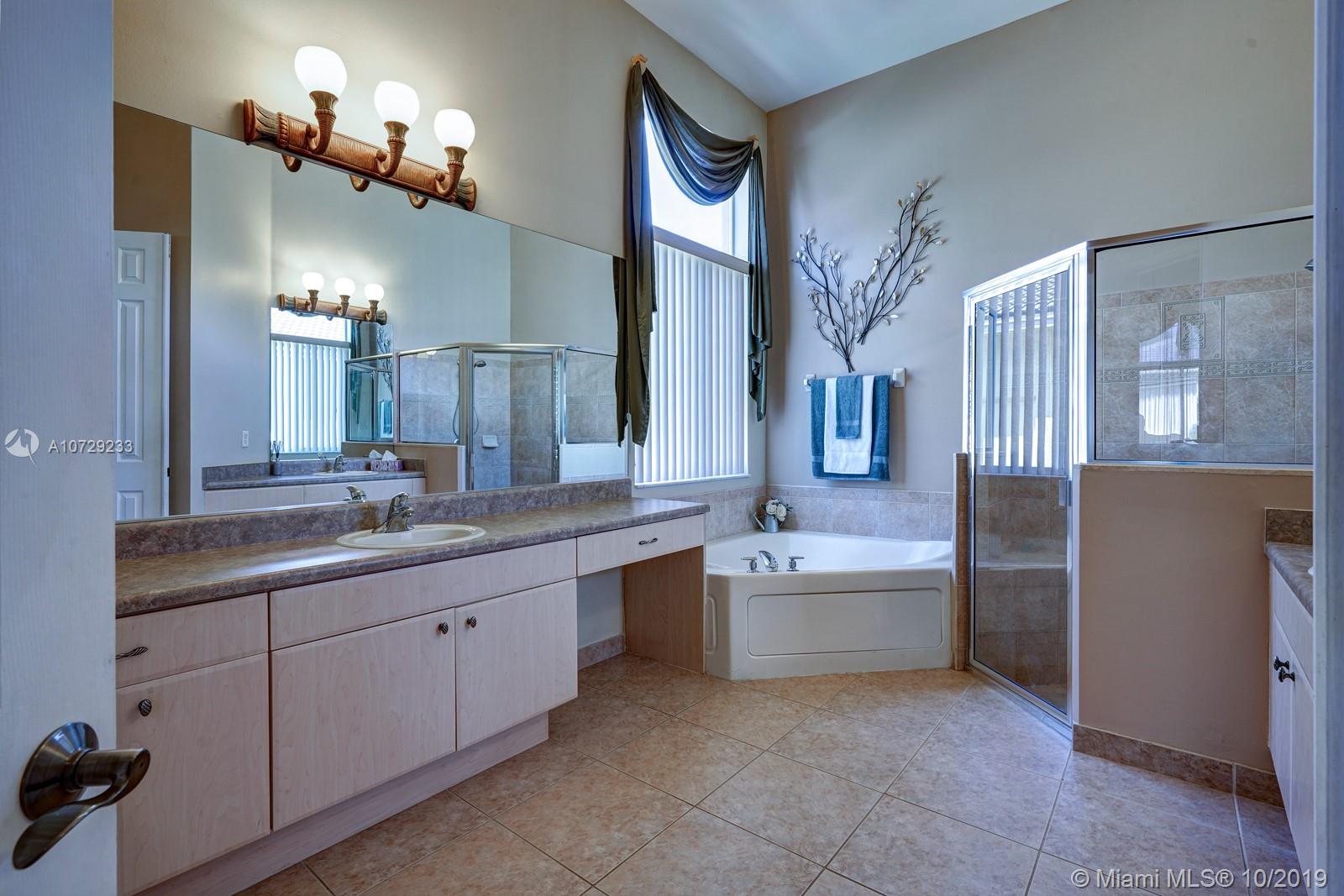 Triple - Split Bedroom layout! Yes! Much sought after Malibu floor plan on the market - The perfect place to call home! This much sough after single story beauty boasts elegant arches, 4 bedrooms PLUS an office, and 3 ½ bathrooms. Perfect layout with in-law suite. Beautiful curb appeal with custom landscaping, 3-car garage and a circular driveway. The backyard is great for entertaining with a covered patio and private fenced yard. The interior is stunning with neutral colors, high ceilings, recessed lighting, oversized closets and doors, spacious bedrooms, 42" wood kitchen cabinets and other tasteful upgrades. Exclusive guard-gated community with numerous amenities: cable, lawn care (front and back), gym, tennis and racquetball courts, clubhouse, pool, spa, etc.