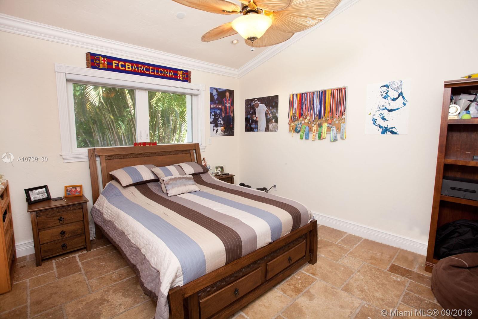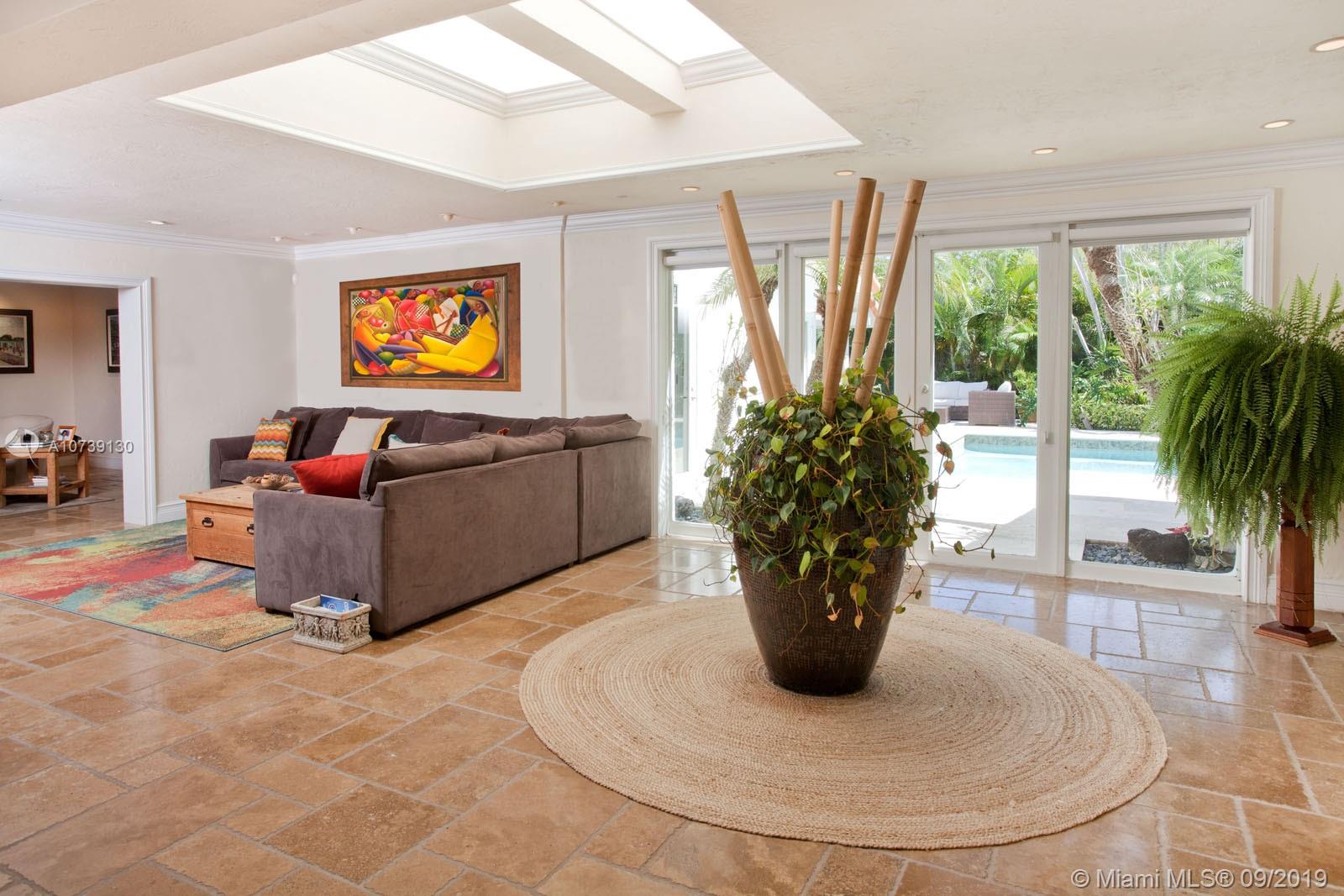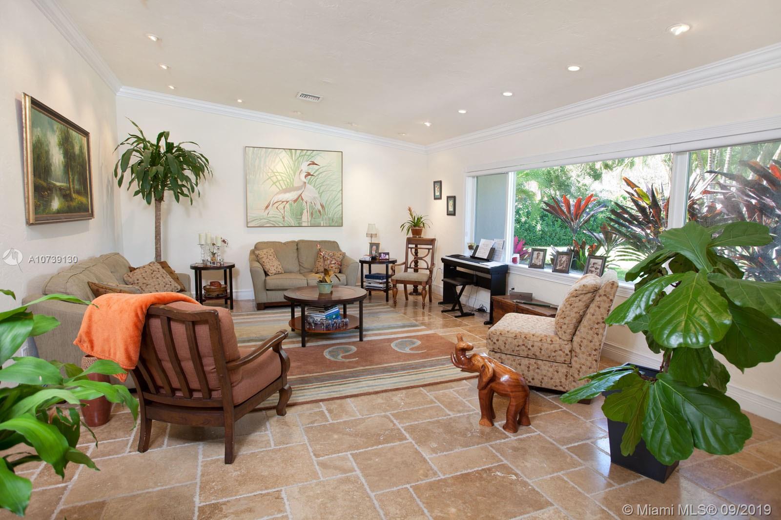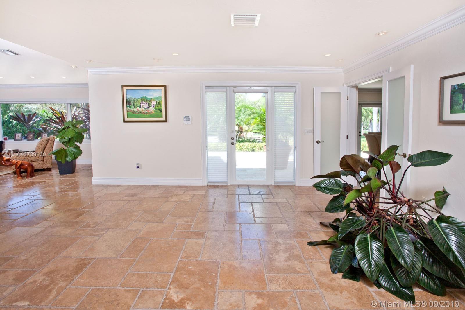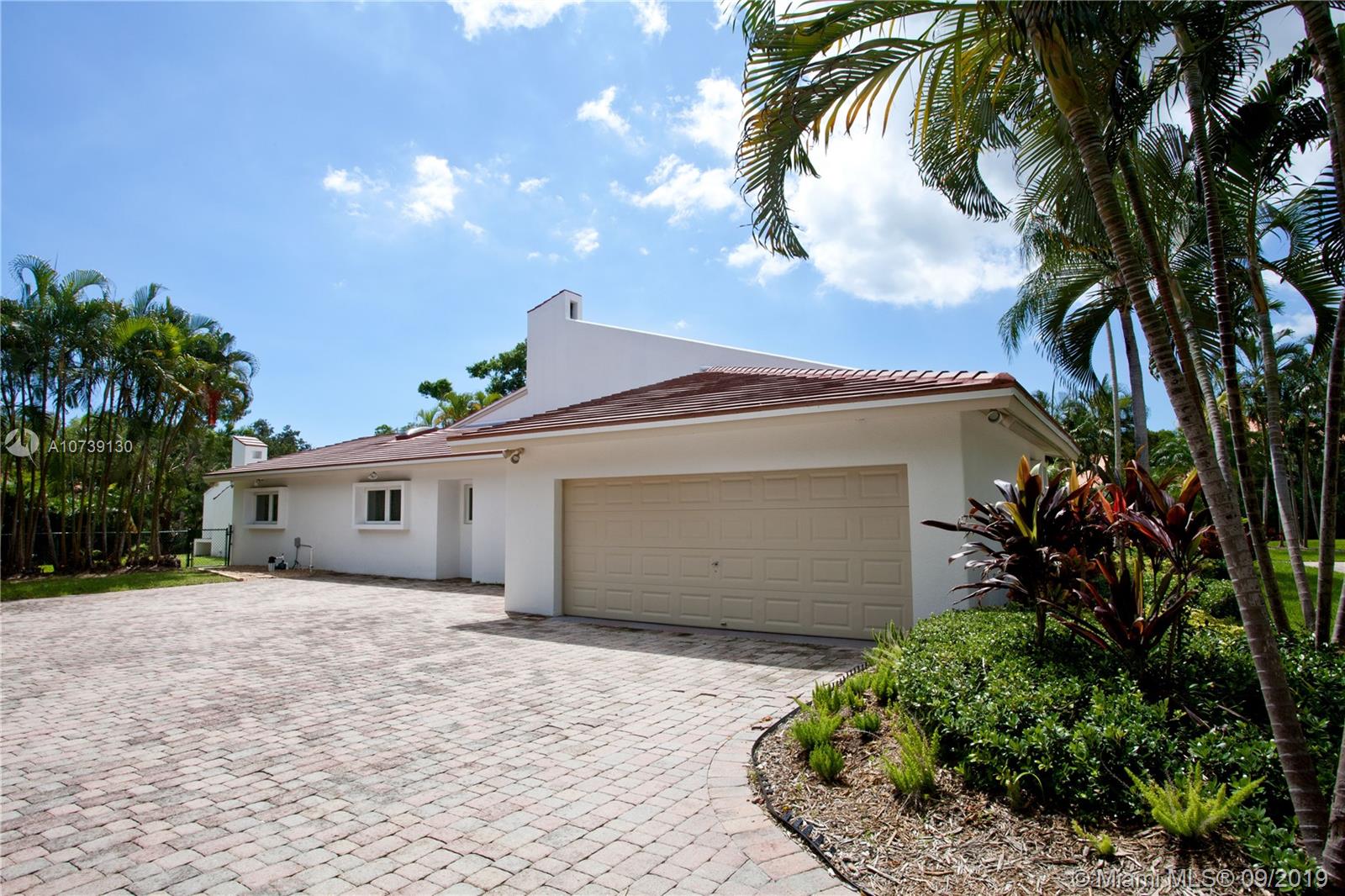 Updated one story home with great split floor plan in sought-after neighborhood. Brand new roof and gutters, impact doors and windows throughout. Gated for privacy, this home sits on a 39,493 sq ft lot with huge driveway and beautiful green areas surrounding the house. The foyer, overlooking the pool and patio, opens to the formal living room, dining room and family room. The gourmet eat-in kitchen has Viking appliances and granite counter tops. Adjacent to the kitchen are the maid's quarters and laundry room. The spacious master suite has a beautiful view of the pool and patio and features a great bathroom and walk-in closet. There are other 3 bedrooms, 2 full bathrooms and a powder room. The pool and patio area feature a gazebo and huge green areas. Also for rent at $12,900.