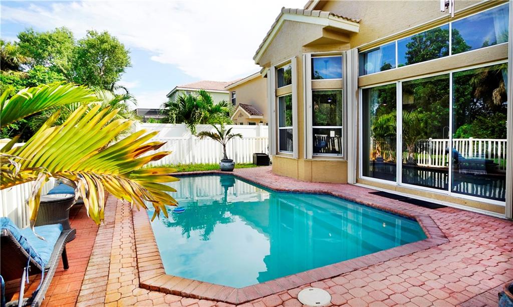 Beautiful 5 Bedroom, 3 Bath with Pool in Wonderful Guard Gated Community. 12ft tall Soaring Volume Ceilings, Huge Rooms, Bright and Freshly Painted, Completely Tiled – NO CARPET. Tremendous Kitchen with additional Cabinets, Newer Stainless Steel Appliances, Double Oven, Breakfast Nook, Opens to Large Family Room. Split Bedroom Floorplan, Custom Drapes, Large Laundry Room with Utility Sink, Accordion Hurricane Shutters, Pavered Driveway and Pool Area, Newly Resurfaced Pool, Quiet Privacy with NO REAR NEIGHBORS. Community Has Full Gym and 2 Community Pools. Fabulous Neighborhood and Terrific Schools. 5th Bedroom currently used as a den. Close to Great Shopping and Restaurants. Very Low HOA. HURRY!!!