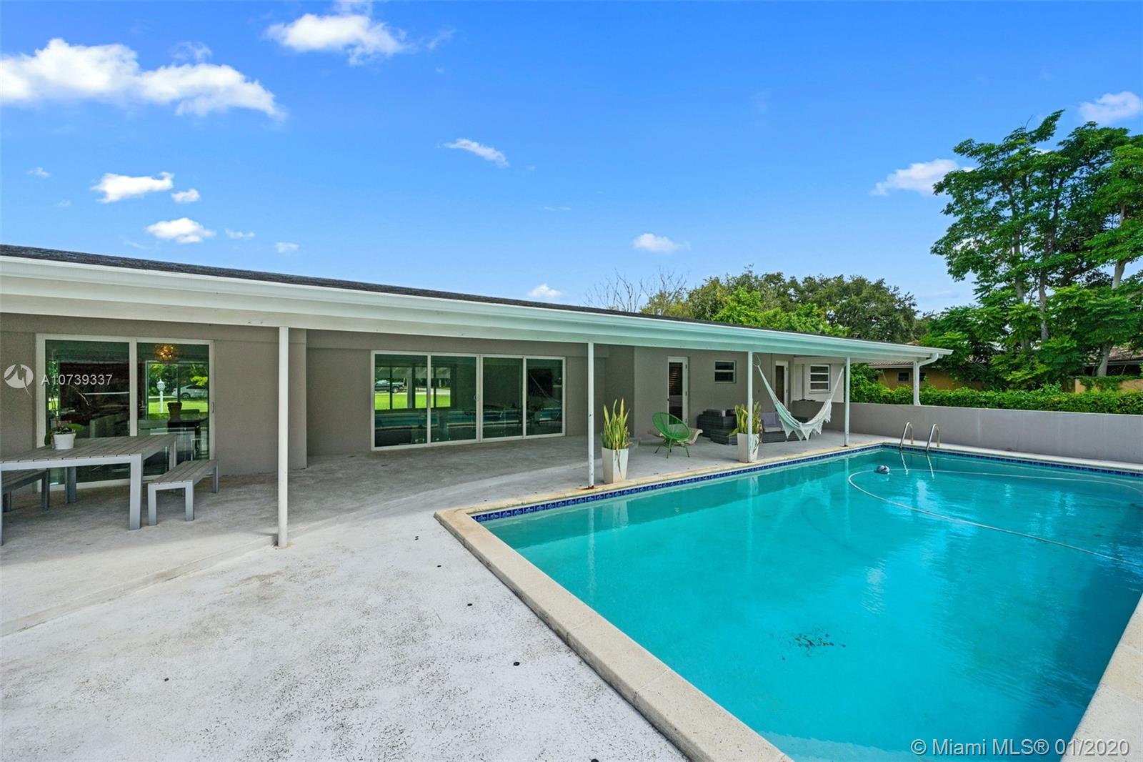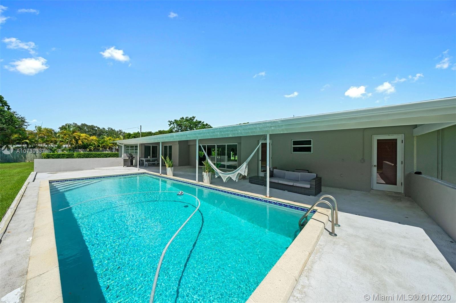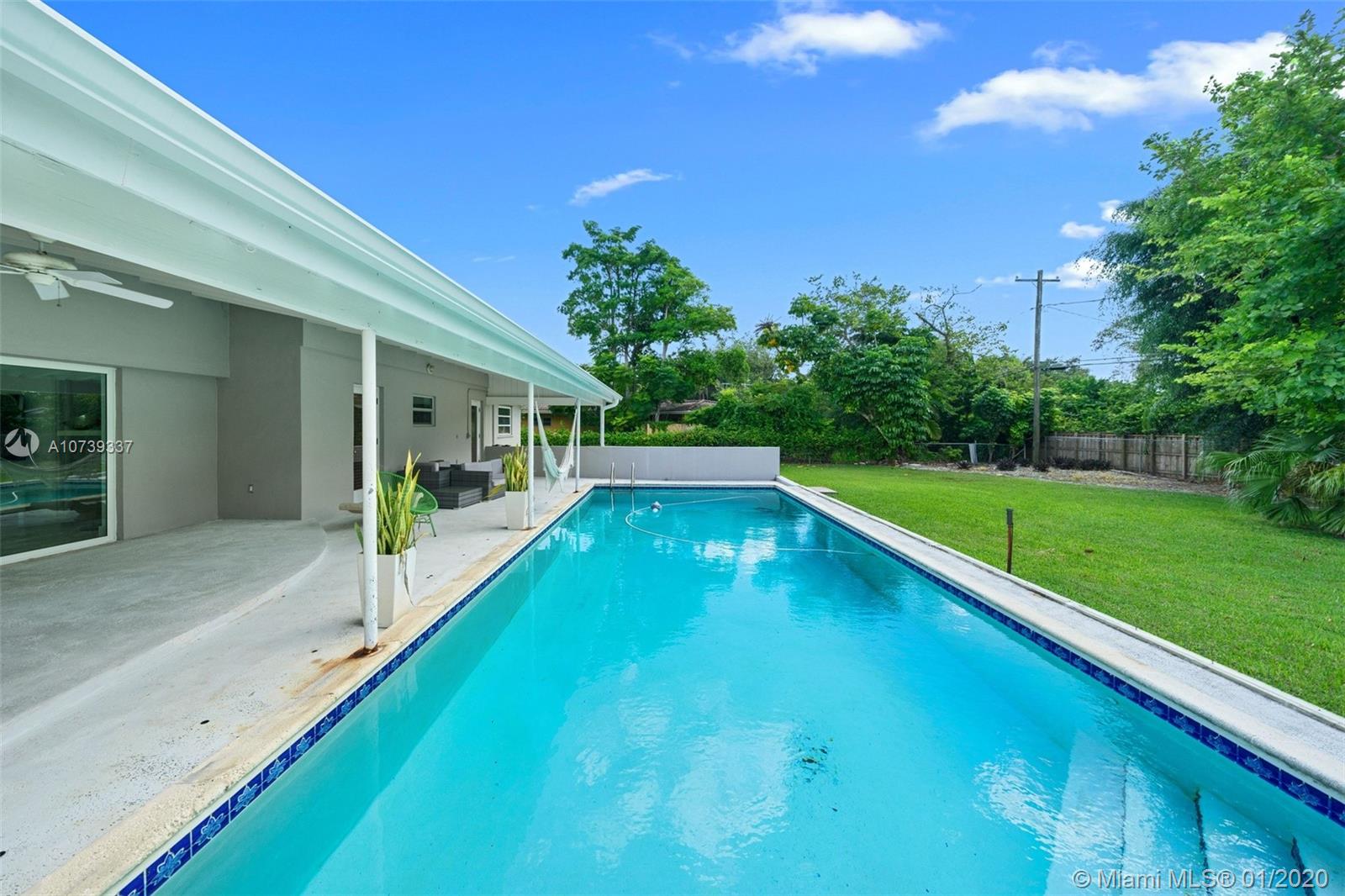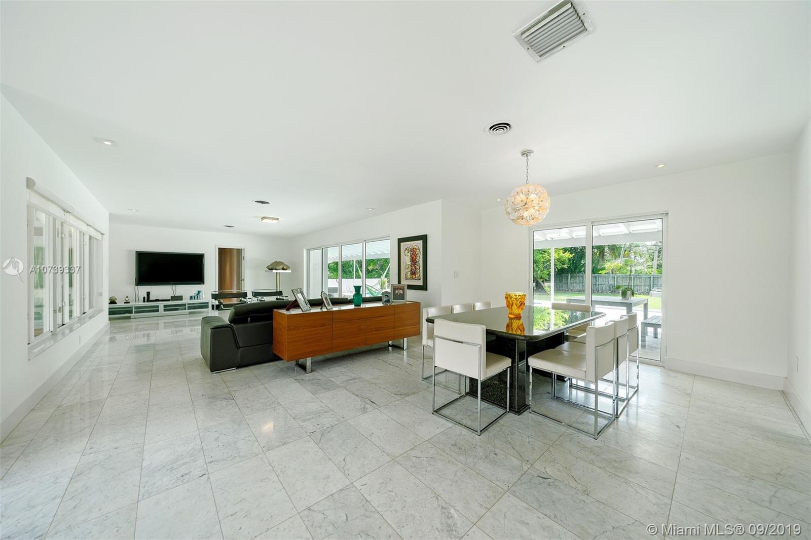 Spectacular 4 bedroom/3 bathroom one-story home situated on a builder’s acre in Pinecrest. Bright open floor plan with spacious living and dining room for grand entertaining. Modern and refined kitchen with quartz countertops and state-of-the-art appliances, including SubZero fridge, wine chiller and Wolf 4-burner glass cooktop and oven. Not to mention, an island with seating for four. Large sliding doors fill the home with natural light and provide panoramic views of the sparkling pool. Covered patio with deep overhang. Modern cabana bath. Dazzling marble floors throughout the house, laminate in the bedrooms. Indoor laundry. 2 car garage plus porte cochere.
