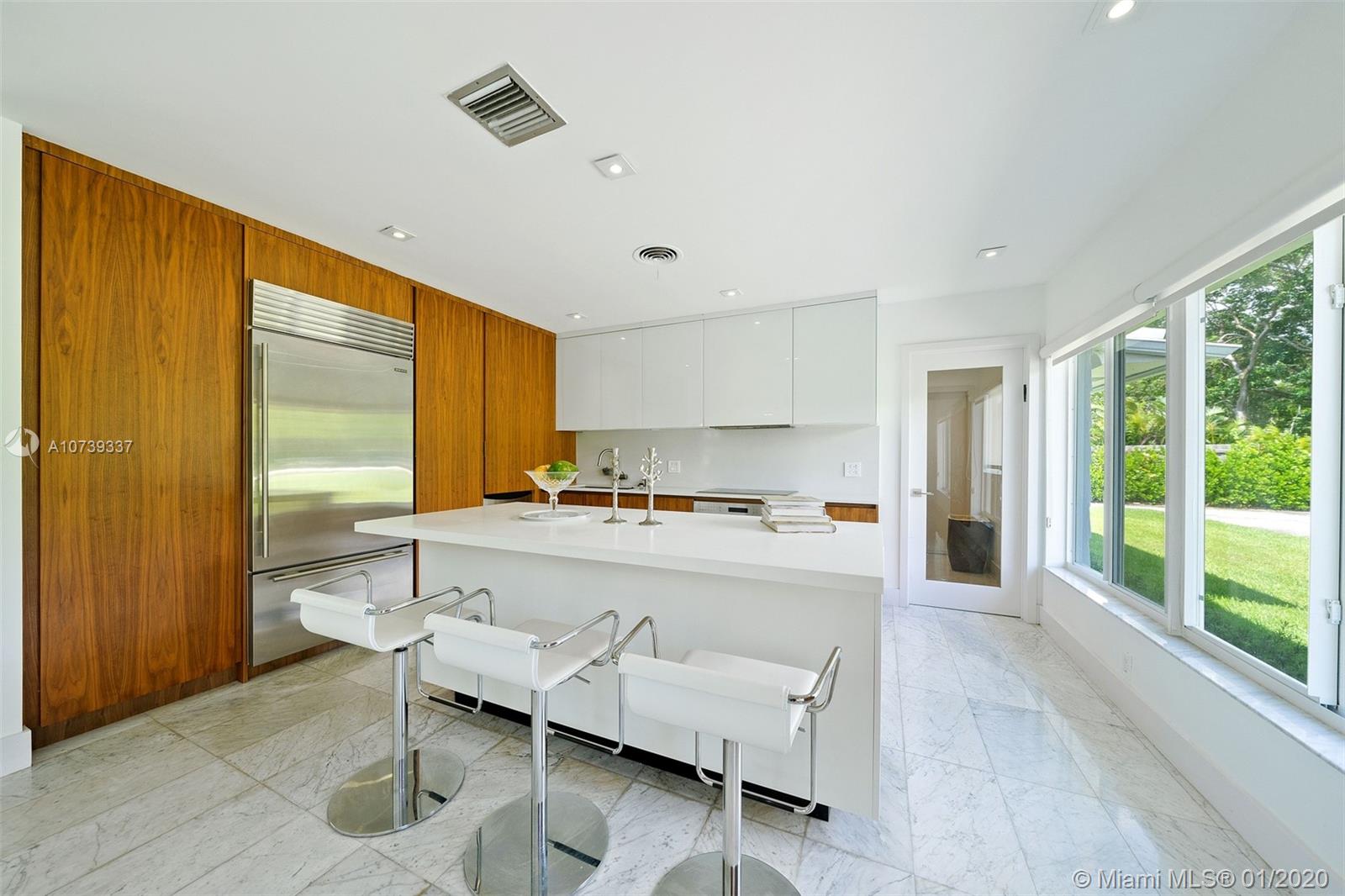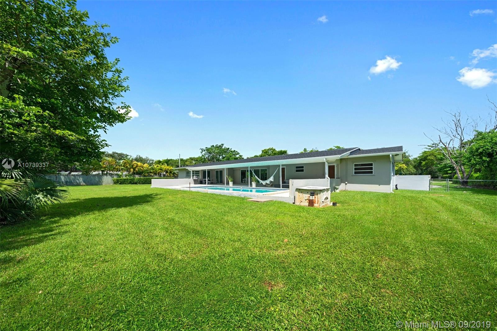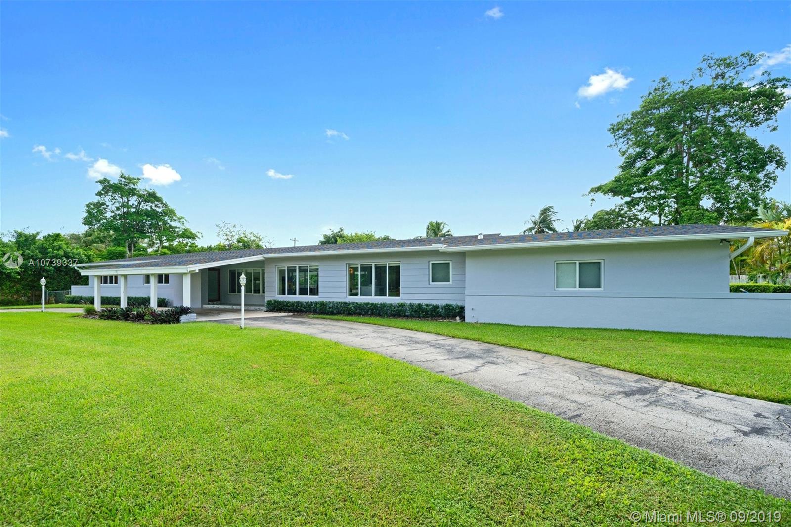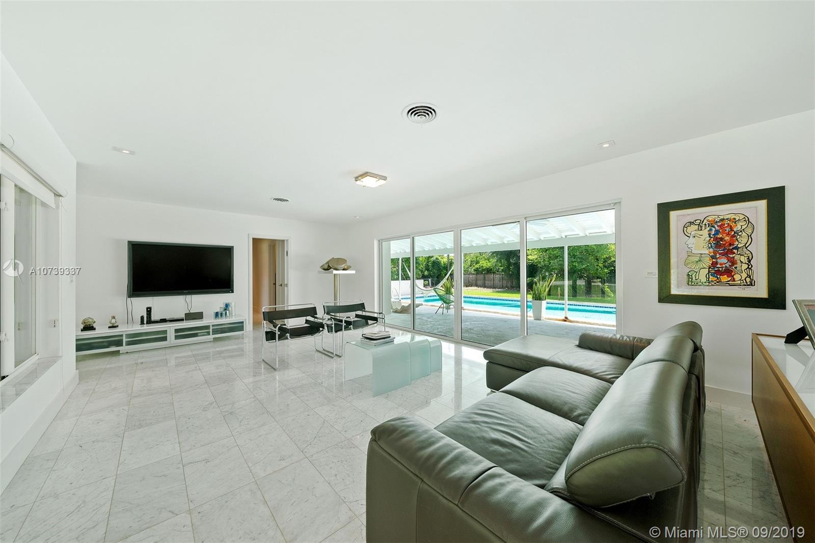 Spectacular 4 bedroom/3 bathroom one-story home situated on a builder’s acre in Pinecrest. Bright open floor plan with spacious living and dining room for grand entertaining. Modern and refined kitchen with quartz countertops and state-of-the-art appliances, including SubZero fridge, wine chiller and Wolf 4-burner glass cooktop and oven. Not to mention, an island with seating for four. Large sliding doors fill the home with natural light and provide panoramic views of the sparkling pool. Covered patio with deep overhang. Modern cabana bath. Dazzling marble floors throughout the house, laminate in the bedrooms. Indoor laundry. 2 car garage plus porte cochere.