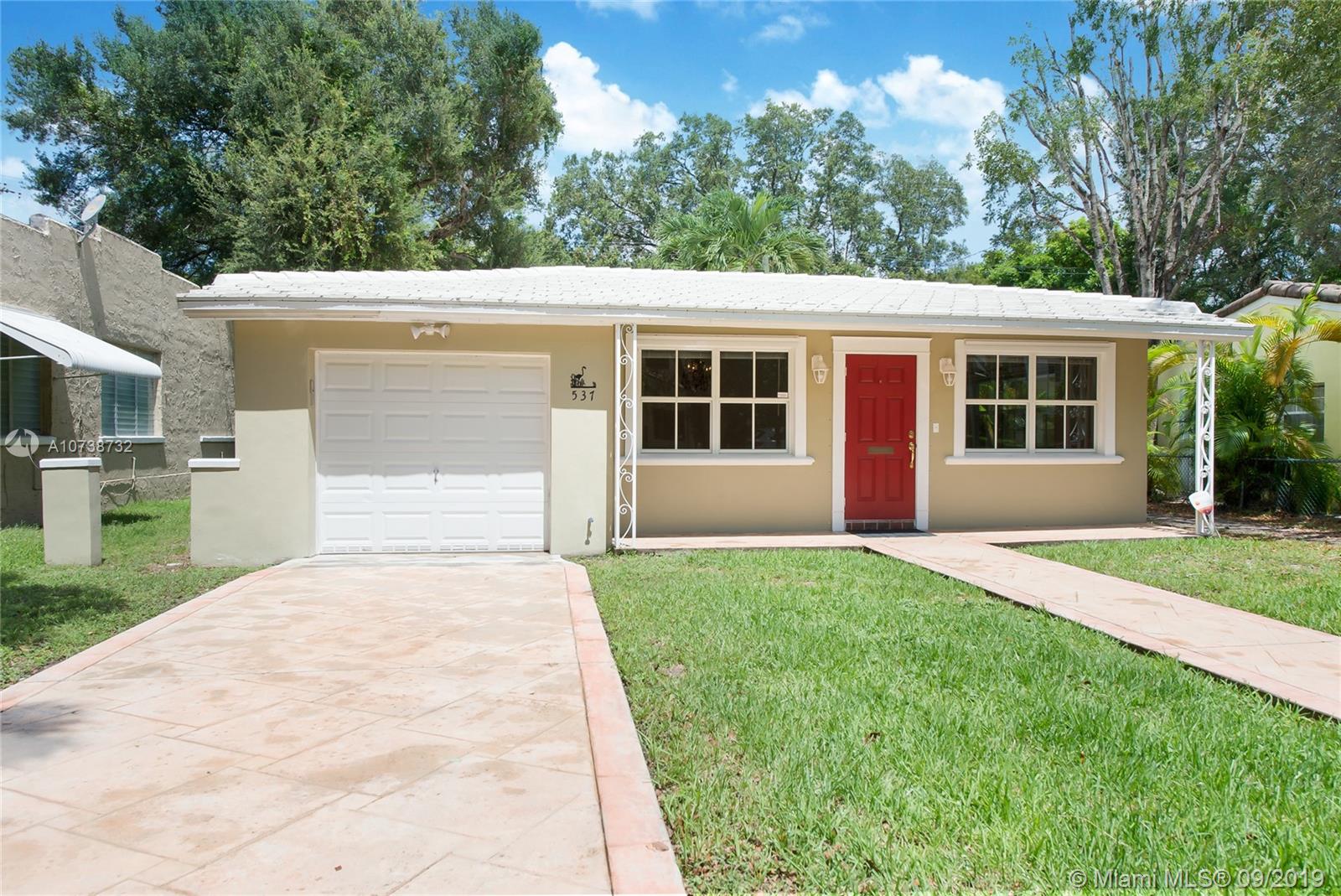 Click on our HD video for a Virtual tour: https://youtu.be/9KG4gcyE2WE Red door leads to 21x20 great room. House functions as 2 bedrooms + 11x9 Den/Library/Office/Study/Nursery/Workout room/3rd bd. Wonderful master suite includes 19x13 bedroom + 2005 addition of 10x12 custom bath w/ glass shower, jacuzzi, 10x12 walk-in closet…with impact windows. Second 13x11 bedroom has built-in shelving & walk-in closet. TAKE NOTE: new PVC waste pipes. Other updates include: new Trane A/C 2018, inside painted 2019, outside painted 2017, new roof 2017, hall bathroom sink & cabinet 2017, kitchen peninsula & cabinets & granite 2008. Great location 6 blocks north of Miracle Mile, 5 blocks to Granada Golf Course & Coral Gables Country Club & 5 minute drive to Venetian Pool & Biltmore Hotel.