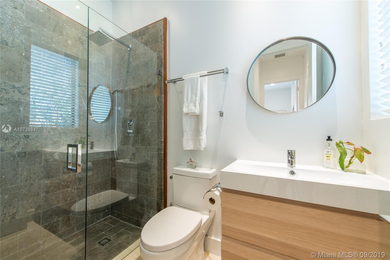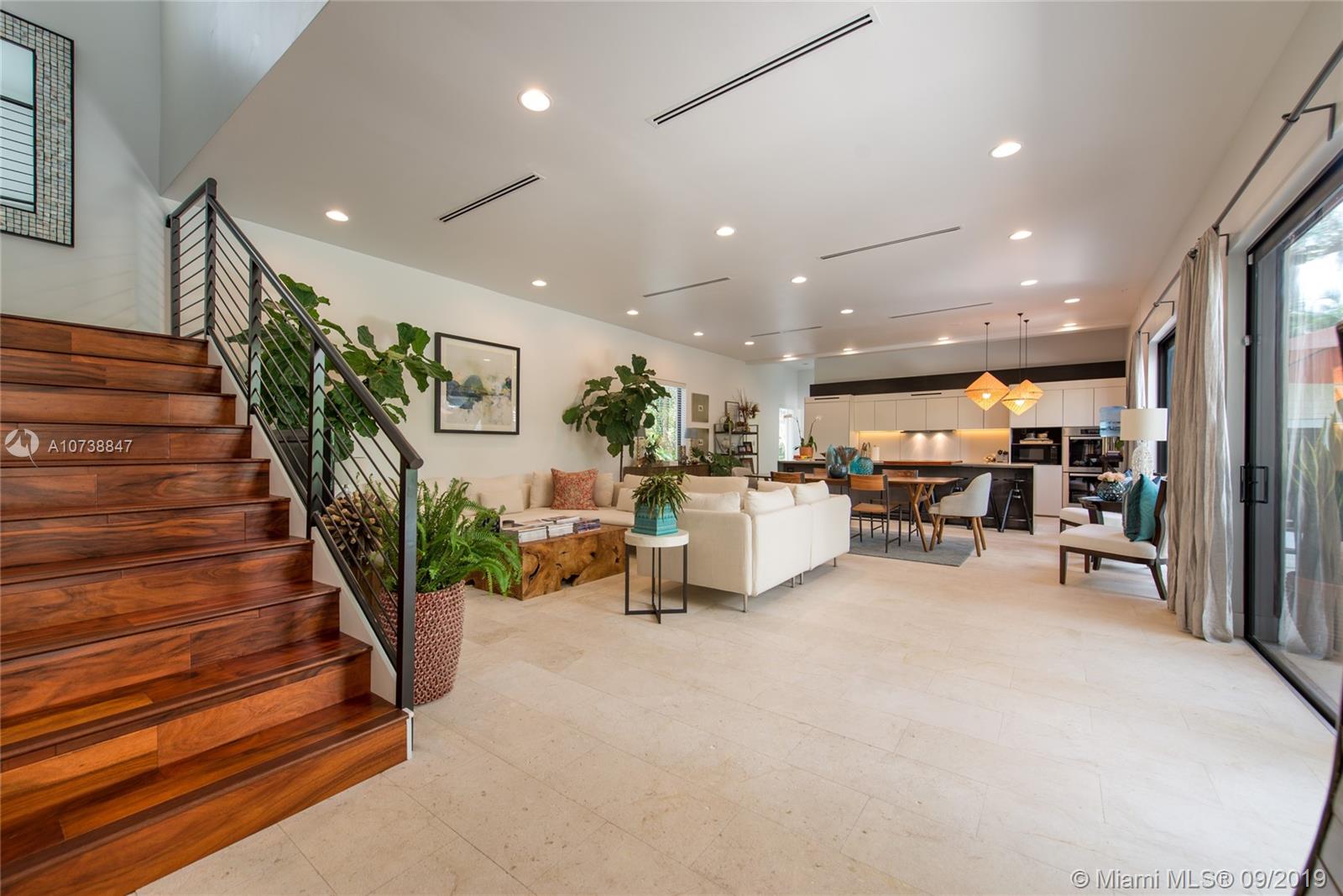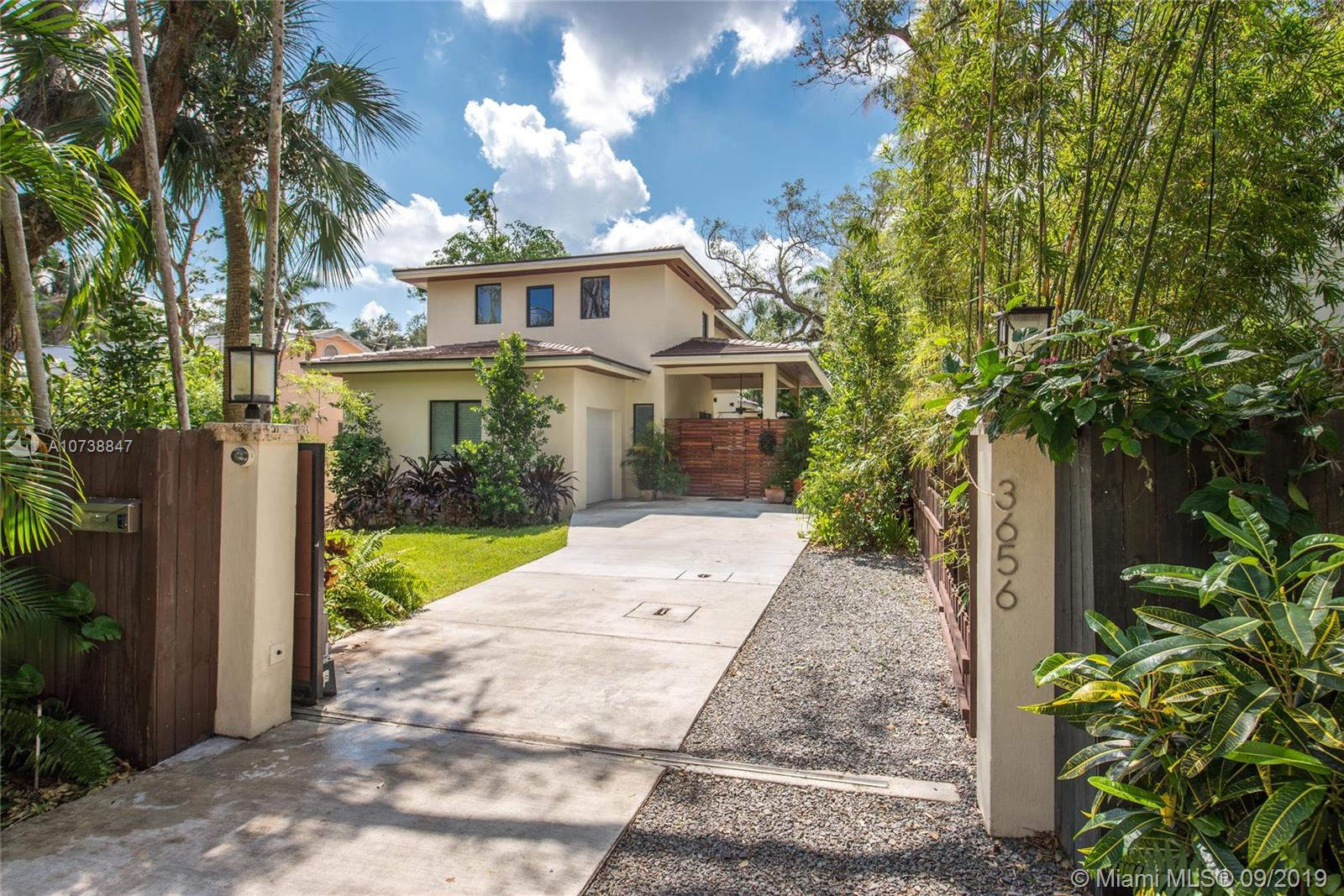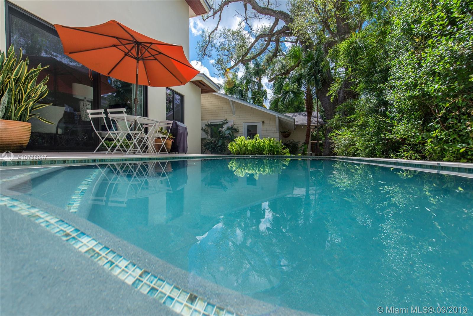 Ultra-private, Coastal Contemporary style home on a quiet South Grove street. Unique design combines new construction main house (3 BR’s/3 BA’s) & adjoining 1938 cottage (totally renovated) which is entered through a glass enclosed passageway. The charming 2 BR/1BA cottage (with living room + den & dining area) has potential as home office or guest suite w/ private entrance. Light-filled living spaces w/ volume ceilings & walls of glass overlooking a tropical pool and covered terrace. Sleek, european-style kitchen w/ stainless countertops & island. Stunning master suite (2nd level) features over-sized walk-in closet, private balcony & spa-like bath w/ 2-person frameless glass shower and soaking tub. Walk to the Grove village center’s galleries, boutiques, cafes & bayfront parks & marinas.