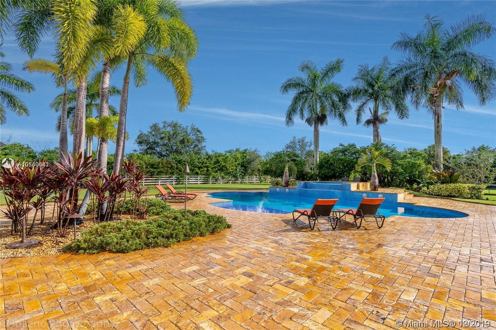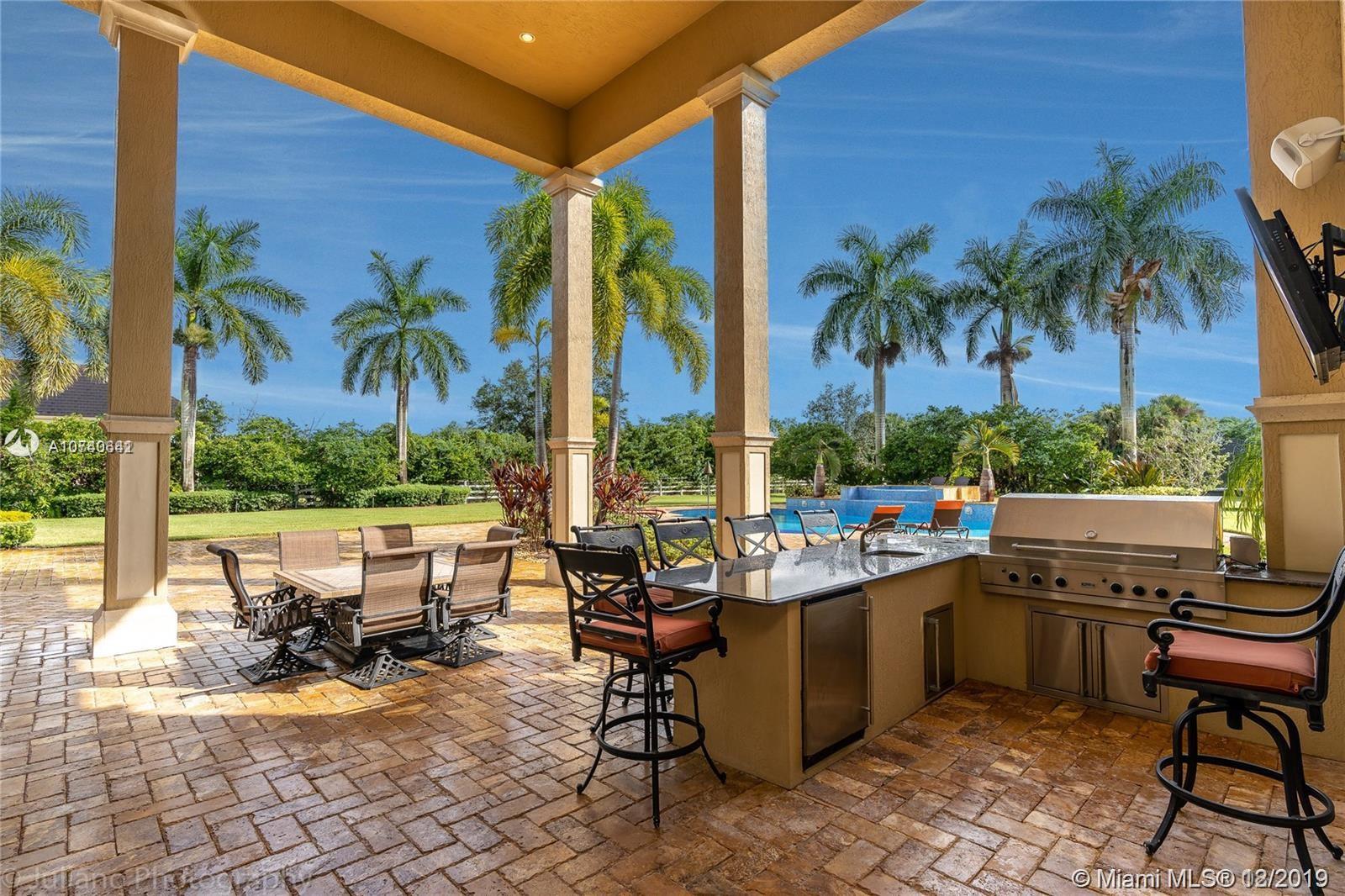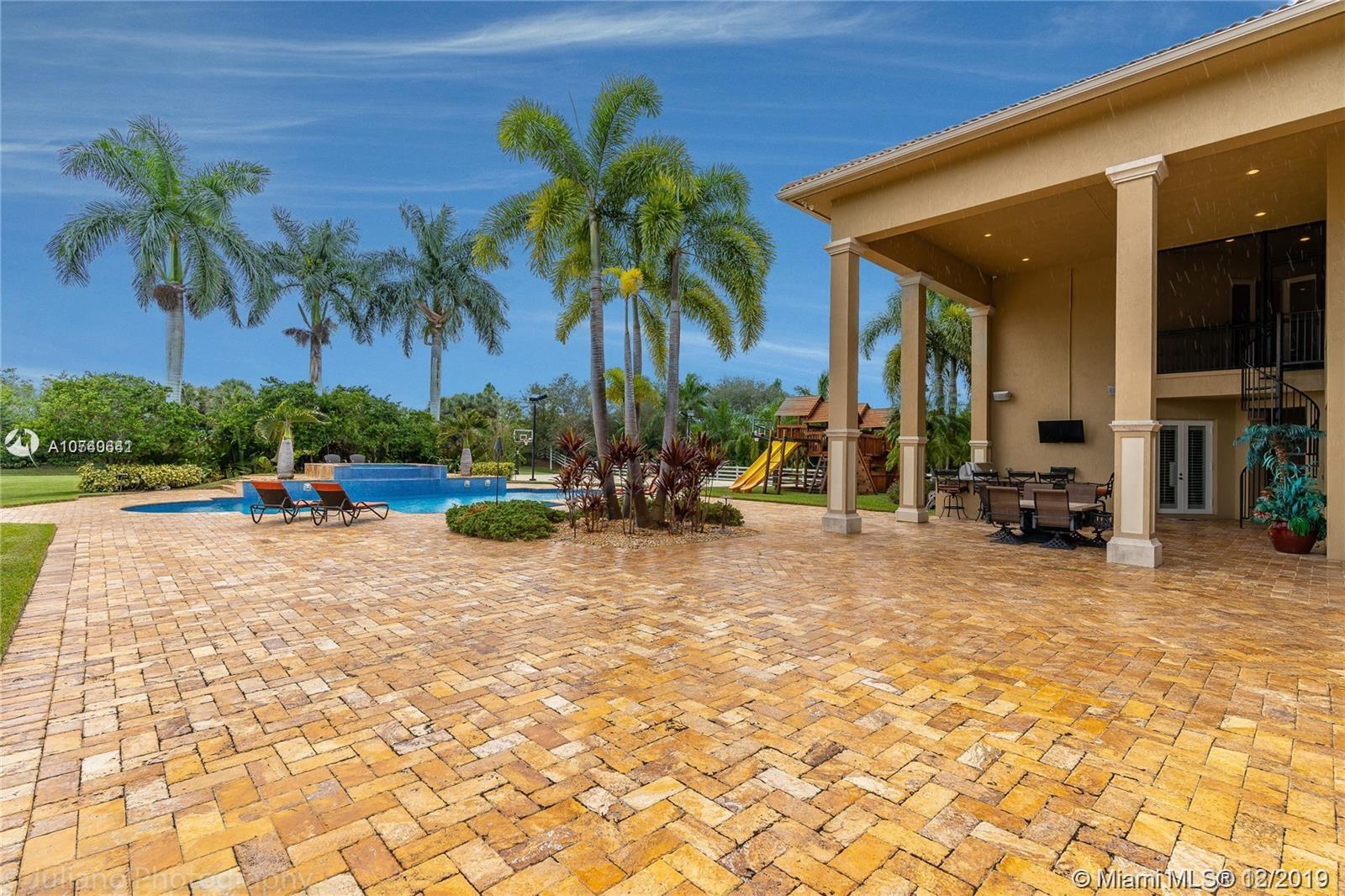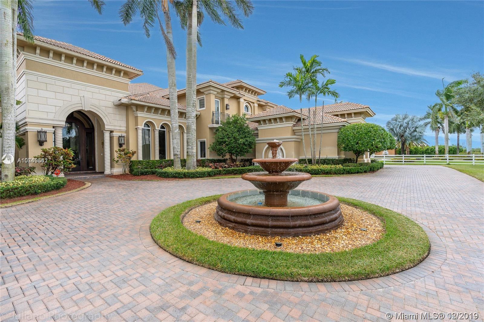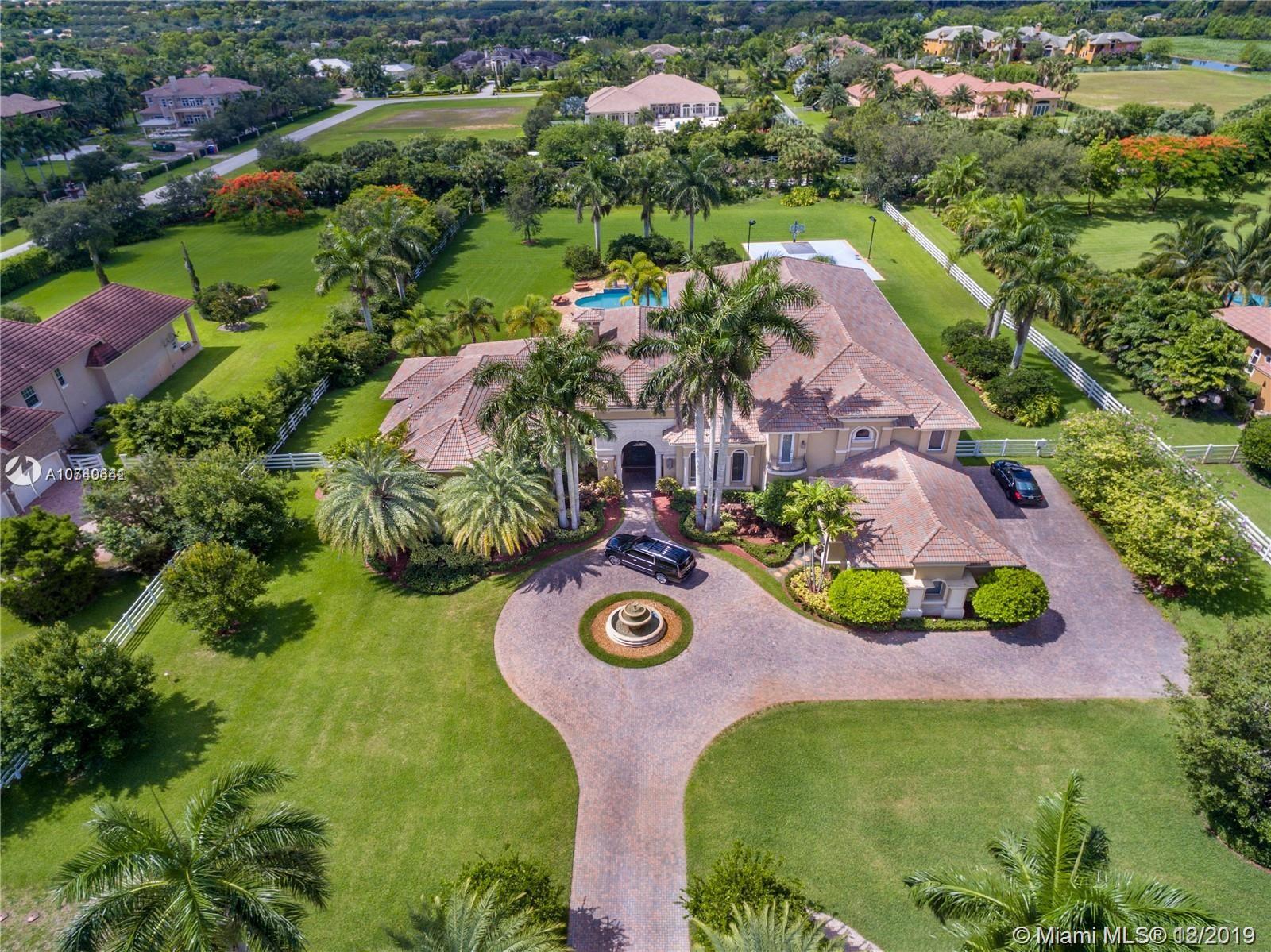 Landmark Ranch Estates the most prestigious community in South Florida!! This custom built home has it all with over 4.5 million in upgrades. Featuring 6 bedrooms, separate guest house, office, theater room, game room, gym, and sauna. Sitting on over 2.34 acres enjoy your resort style backyard with a beautiful heated pool, summer kitchen, built in speakers throughout the entire home, outdoor fireplace, and full size basketball court with lighting! Crestron controlled Smart Home. Top of the line Viking kitchen appliances with a 6 burner Gas Range and subzero refrigerator! Generator with two 1,000 gallon tanks perfect for any storm! The exterior's 300+ LED lights look magnificent in the night time sky. 5 car garage with a 7,000 sq ft driveway to fit all your cars! Must see video walkthrough!