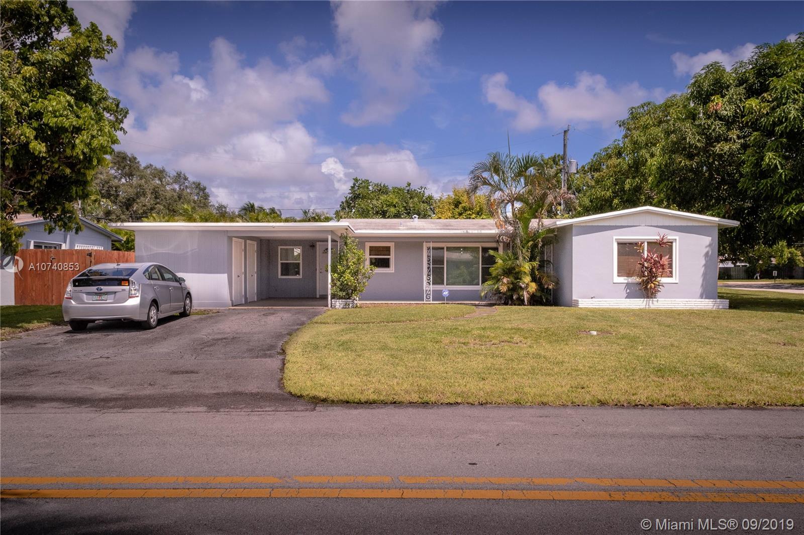 Mid-century modern gem in quiet River Oaks. This tastily renovated retro-modern 3 bedroom & 2 bath single-family home is located on a large 8,900 sq ft corner lot east of I-95. Open floor plan, remodeled kitchen, terrazzo floors, impact windows, laundry room, storage room, oversize yard with mature fruit trees - two large mango trees, a star fruit tree, and a lychee tree. There is plenty of parking with a carport and a large driveway with space for 4 cars. Downtown Ft. Lauderdale, FLL Airport, and great beaches all within 4 miles. Easy access to all major highways! I-95 within 1 mile, Turnpike & I-595 within 3 miles. Easy to show, text Listing Agent