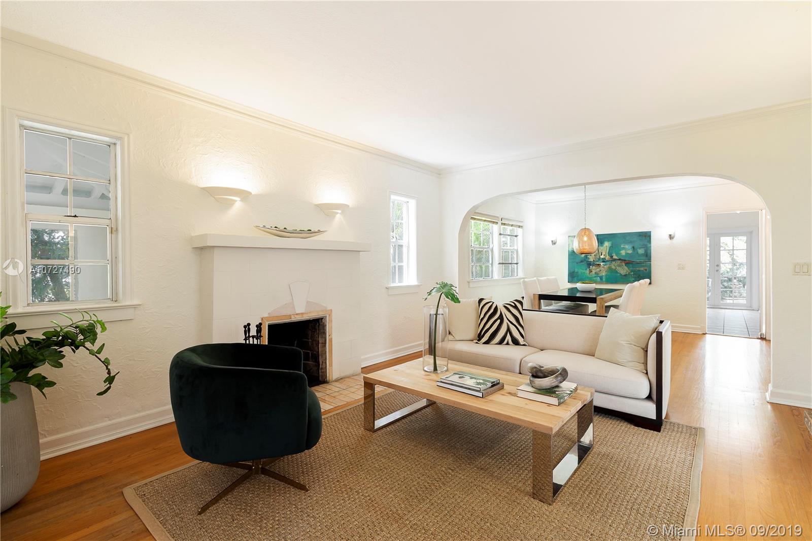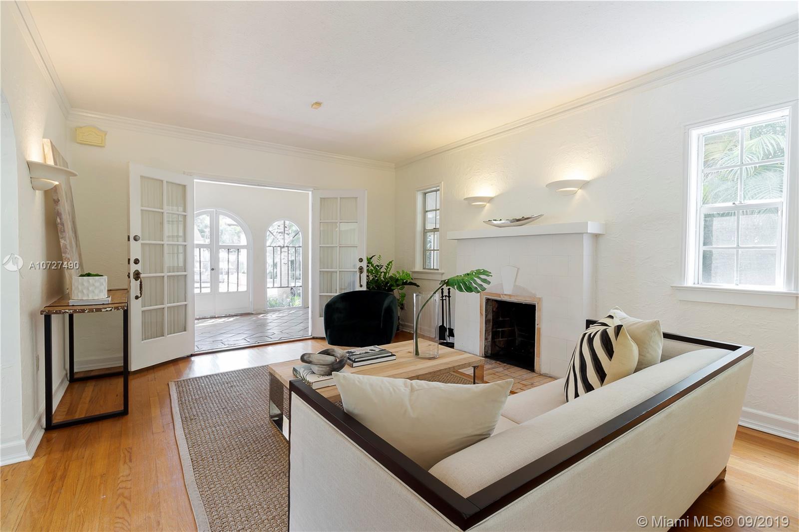 A timeless Old Spanish sits on a charming and quintessential Coral Gables street and is now available for a new homeowner. Merely .2 of a mile from the famed Miracle Mile, everything from restaurants, shopping, book stores & cocktails alike are at your beck and call. The traditional screened in front porch sets the tone for the home. Original wood floors and understated fireplace anchor the living spaces. The main house has 2 bedrooms and 2 full baths with a sitting room inside the master. Spacious kitchen leads to the sweet courtyard style backyard. A true guest house with full bathroom and kitchenette is ready for your visitors to enjoy, or for an easy rental income opportunity. Make yourself at home here and find yourself at the center of Coral Gables living. A Very Special Home.