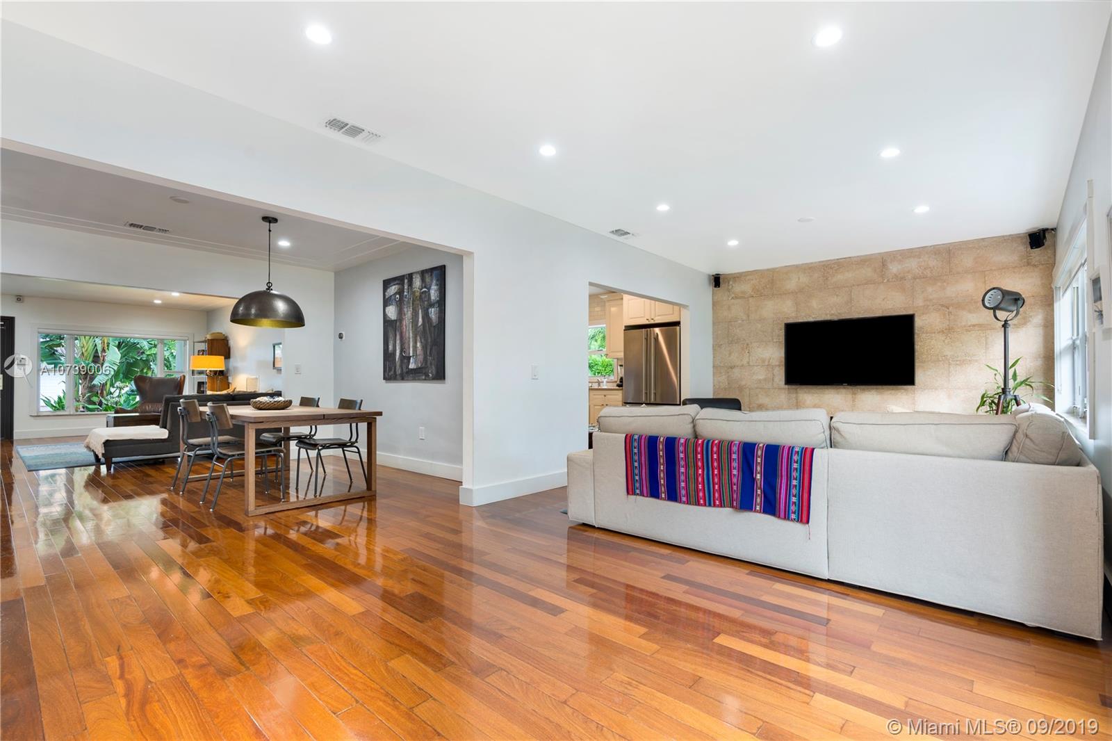 Turnkey Coral Gables home. 3 bedrooms and 2 baths with gorgeous modern wood flooring throughout. Open concept and flow-through space allows for entertaining comfortably. Home is completely remodeled w/ impact windows and doors throughout. Beautiful picture window greets you in entrance. Welcoming front porch area. Spanish tile roof. Tray ceilings, charming archways, tray ceilings, remodeled bathrooms and kitchen, lovely subway tile kitchen with light wood cabinetry on granite and stainless steel appliances. Living and Florida room are ample with big picture windows to invite maximum light into home. Home has an ample 2 car garage and a nice size backyard complete with Chicago Brick pavers, room for a pool. This one will fly off market.