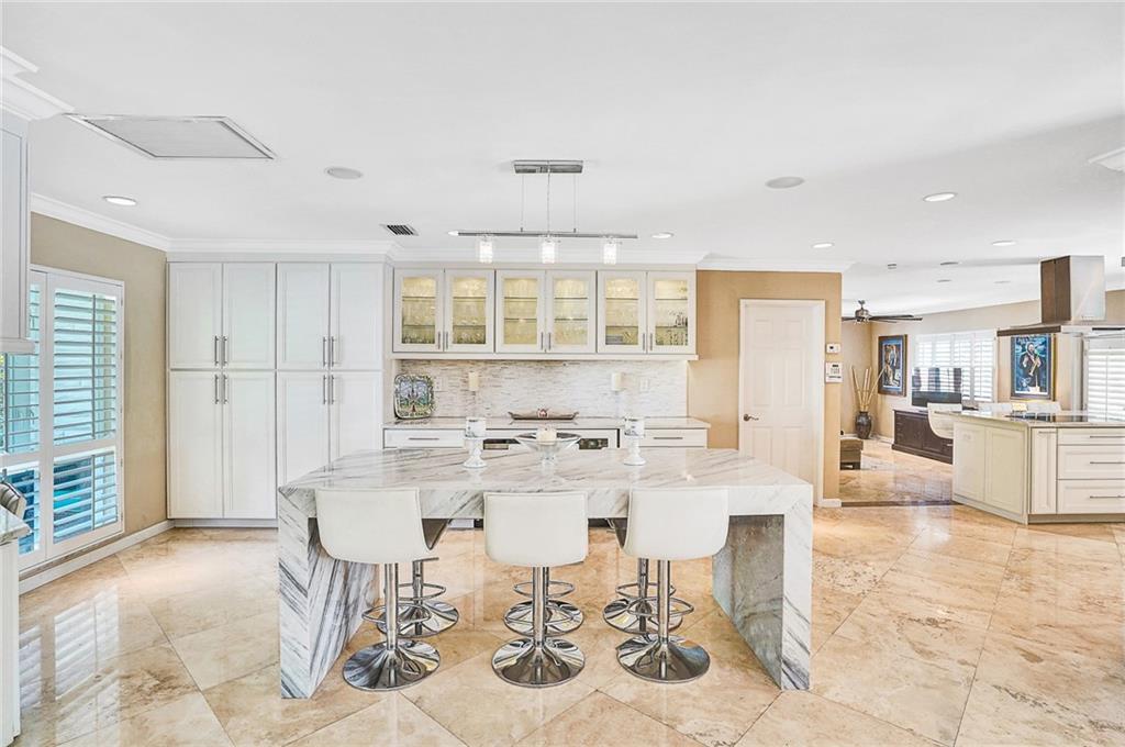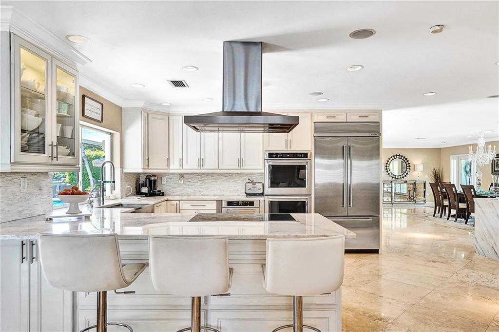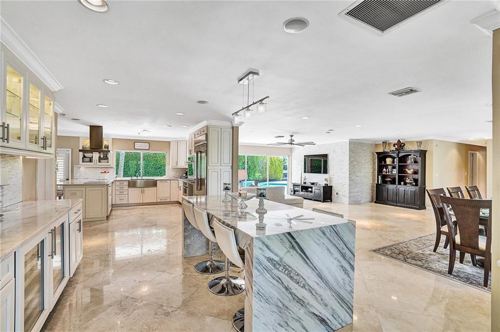Spectacular 5 bedroom 4.5 bath waterfront home in Coral Ridge Country Club. Oversized 16,000 square foot corner lot! Features include light and bright open floorplan, gourmet kitchen with marble countertops, stainless steel appliances and ample cabinetry, marble and wood flooring, Plantation Shutters, large master suite with hi-ceilings, walk-in closet and bathroom with separate tub and shower, big secondary bedrooms, interior laundry and more. Huge private backyard with pool, summer kitchen, grass area, 17,000 pound boatlift and long water views. This home is a must see.
