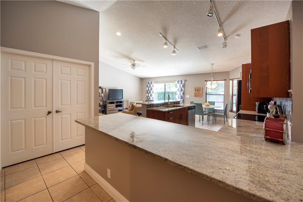 Gorgeous 4 bedroom 2 bath, pool home in desirable Fox Run at Jacaranda. Raised foyer entry, soaring ceilings, split bedroom plan. Updated kitchen - 2012 has spacious open design, over-sized granite counter tops, beautiful back splash, stainless appliances, soft-close cabinets and drawers. Tile flooring in living areas and bathrooms. Vinyl wood flooring in all bedrooms, master bath and master walk in closet - 2018, master suite has separate roman tub & stall shower. All interior living areas and bedrooms freshly painted - 2018. Air conditioning - March 2018. Updated vanities and mirrors in both bathrooms. Recessed lighting. Oversize backyard with pool is perfect for entertaining. Mature oak trees and lush landscaping. This is a must see! Close to major highways, malls and restaurants.