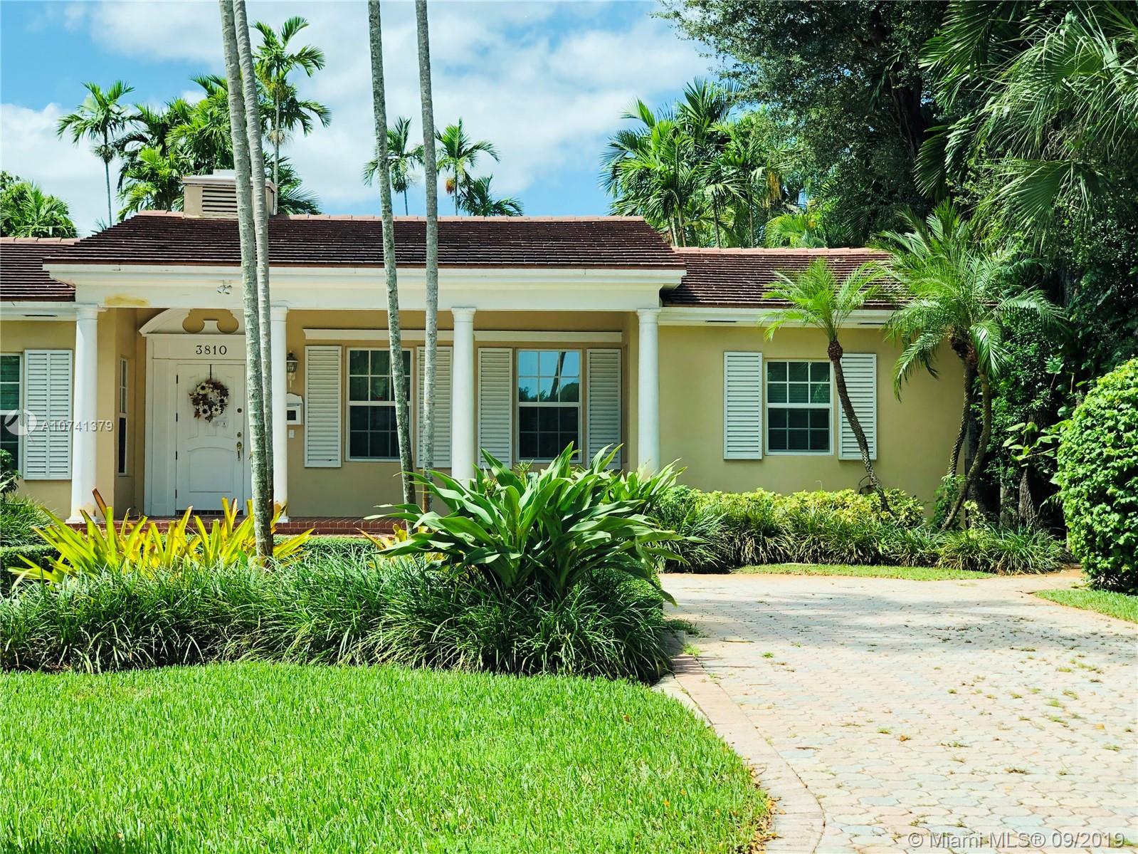 CORNER LOT. Centrally located in the heart of Coral Gables. Classic Coral Gables charm. Spacious traditional one story colonial beauty features a welcoming front porch, spacious master suite, hardwood floors, crown molding, pool, patio, impact glass windows and doors. 3 bedroom/2 bath oasis has 2,909 adj. sq. ft. with a 14,915. Plus an additional third (full) cabana bath adjacent to garage. Great curb appeal and generous circular driveway can accommodate many guests. Lushly landscaped tropical paradise surrounds the property for an airy yet private feel.