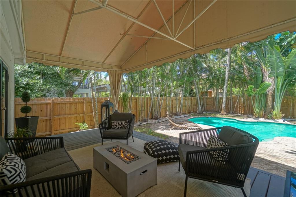 This home belongs in a magazine! Renovated 3 bedroom 2 bathroom home with a pool. Featuring original Miami - Dade Pine Floors, vaulted ceilings, and a sizable screened in front porch. Incredibly generous outdoor entertaining area, unique outdoor shower, extra large industrial grill, and modern fire pit. Carport attached to home and additional parking on side yard. Located in the heart of Tarpon River and walking distance to Fort Lauderdale's Riverfront, Las Olas, Himarshee, and water taxi locations.