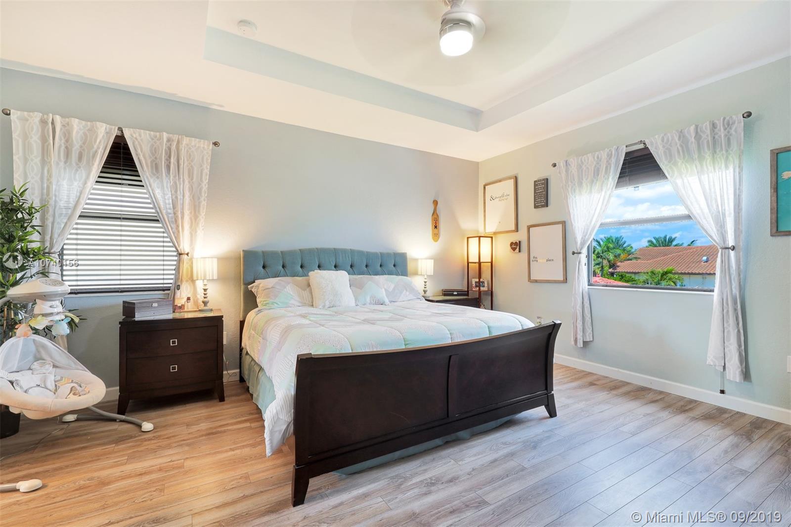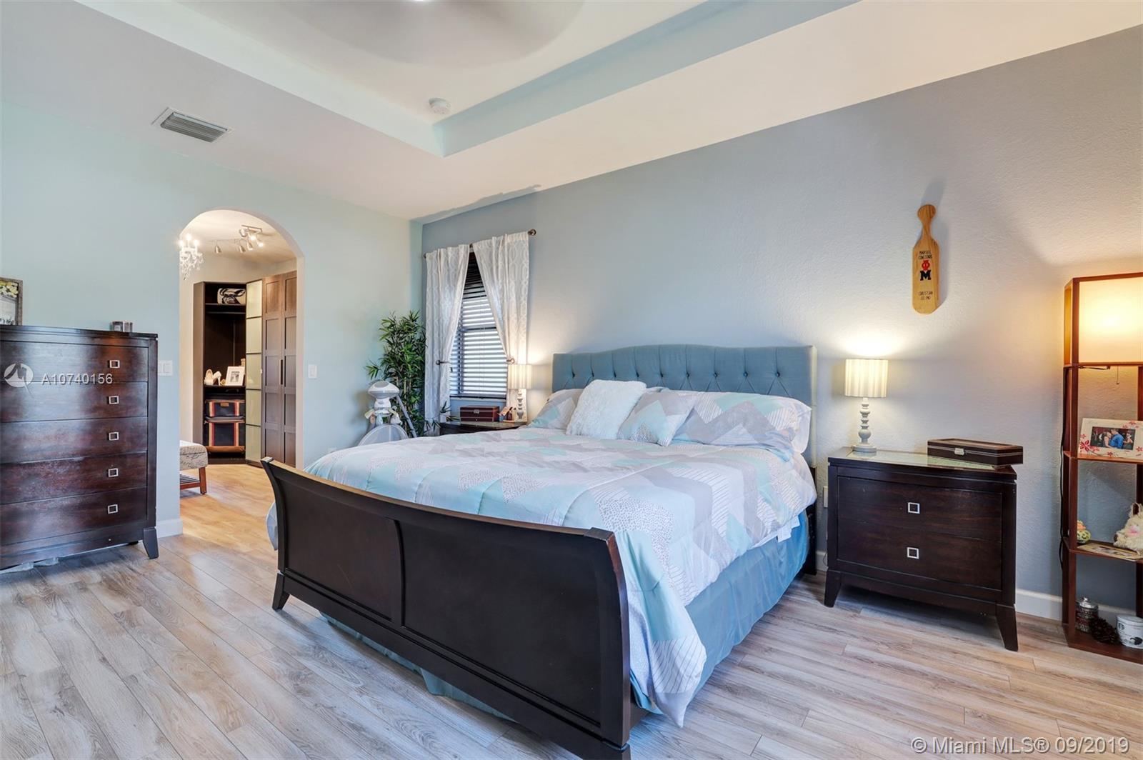 Stunning Lake View home in Bellagio! This newer construction home has it all plus many owner upgrades! Step into the perfect entertaining space with high ceilings, chefs kitchen, and living room with custom home entertainment center just for you! Convenient 1/1 on first floor- perfect for guests and in-laws. Serene lake views from the master, and the closet of your dreams! This community features 24-hour security, resort style pool, clubhouse, and fitness center all for a low HOA fee! Don't miss out on this gem!