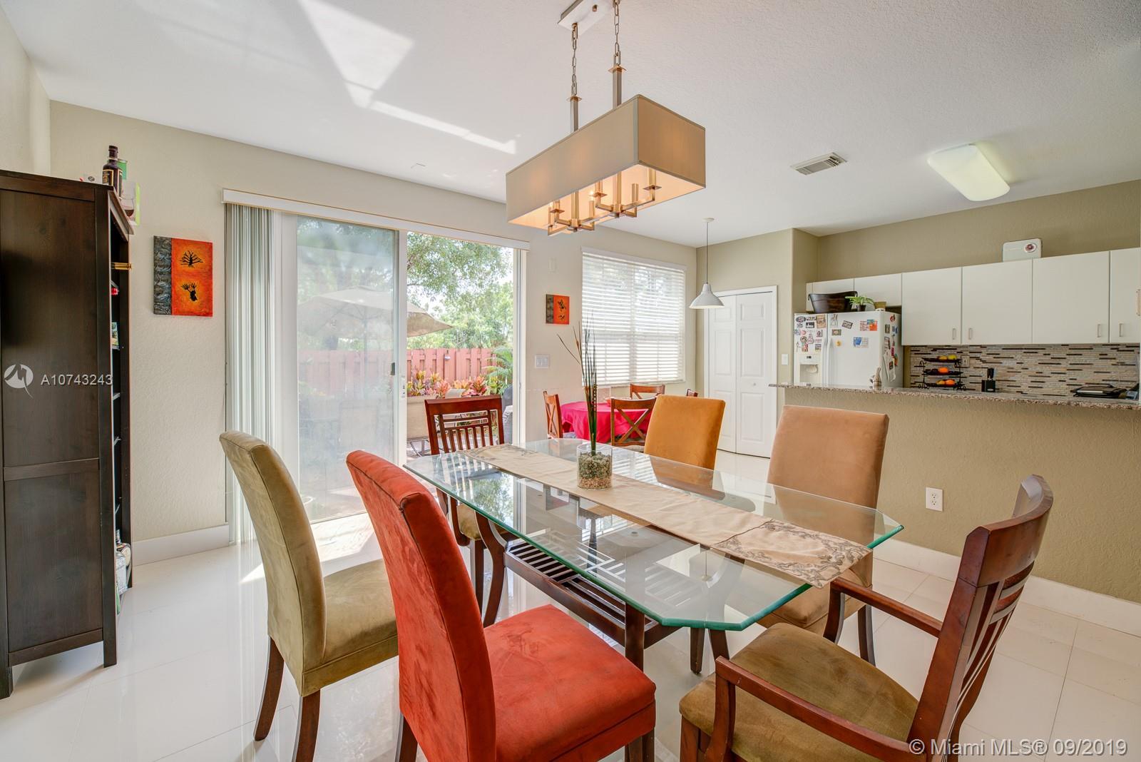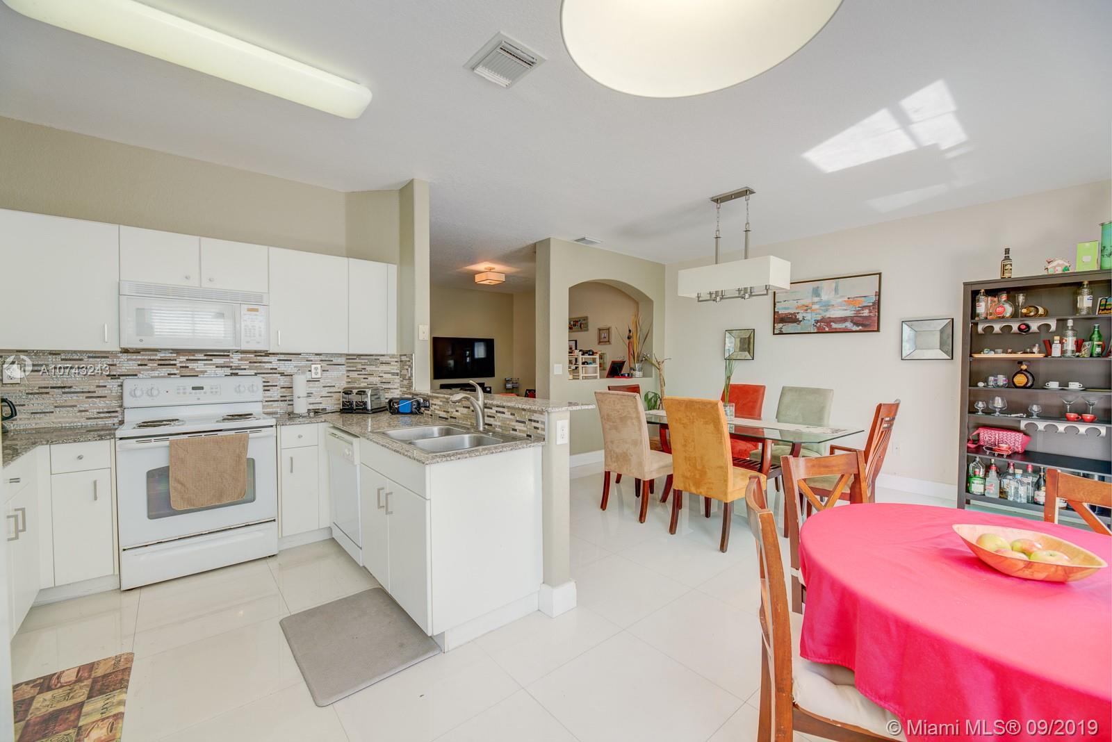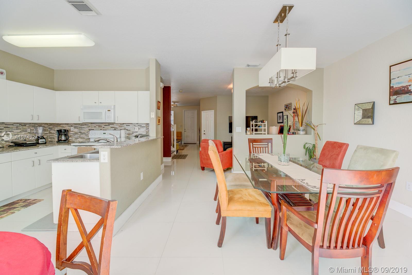 This modern 2006 two story Mediterranean style town home with garage in the heart of Doral has everything you're looking for. Sparkling white porcelain floors throughout the living area give the home its wide open airy feel and the exquisite cafe colored wood floors in the bedrooms make a beautifully stunning contrast. Modern accents and fixtures decorate the entire interior of the home giving it a unique look along with its classic Spanish/Mediterranean exterior. Great for entertaining you'll enjoy its formal living room with adjacent Florida room making it great for receiving guests. Its nearly 1900sf of living space encompasses 4 bedrooms and 2.5 baths all updated with pristine light fixtures, sinks and cabinetry. A large open kitchen overlooking the dining area.