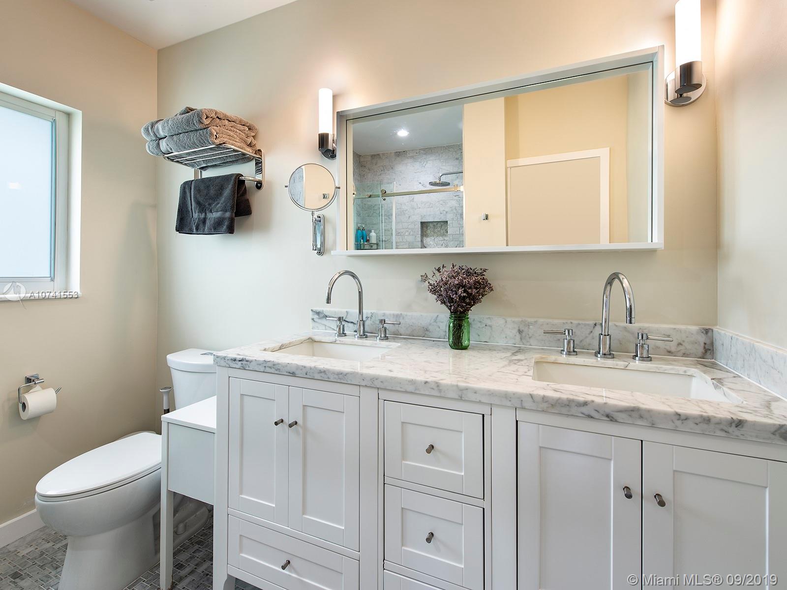 Actual SF is 2435/Appraisal. Don't let the street prevent you from seen this amazing home! Completely renovated Mid-Century modern stunner on an over-sized corner lot in Miami Shores. Close to all the Shores has to offer - community center, sports fields, tot lot, houses of worship & downtown area. Gorgeous original terrazzo floors in dining & family rooms w/wood floors throughout bedrooms, kitchen & living room. Large kitchen w/breakfast nook & island for entertaining. Spacious master-bed w/walk in closest. 2-car garage w/bathroom, loft storage & laundry w/more cabinet storage. Upgrades include custom smokeless HearthCabinet fireplace with bar, new driveway and motorized gate, low maintenance lush landscaping and new plumbing, impact windows/doors, septic tank and drain field.