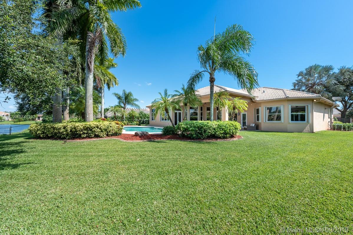 Beautiful 5/4 in Imagination Farms. Eye-catching curb appeal with paver driveway, lushly landscaped in the gated community of Imagination Farms. All bathrooms recently remodeled. 3 newer AC units, stainless steel appliances, Double oven, granite counter tops, crown molding throughout, pool, three car garage, alarm system. New hurricane impact windows in living and dining areas, accordion hurricane shutters, built out master his and hers walk-in closets. Situated on private lake for activities. This house has it all, great for entertaining. Imagination Farms is the perfect location. Centrally located, close to parks and great school district A+. 24hr gated neighborhood and close to airports and major highways. For showing call Casey